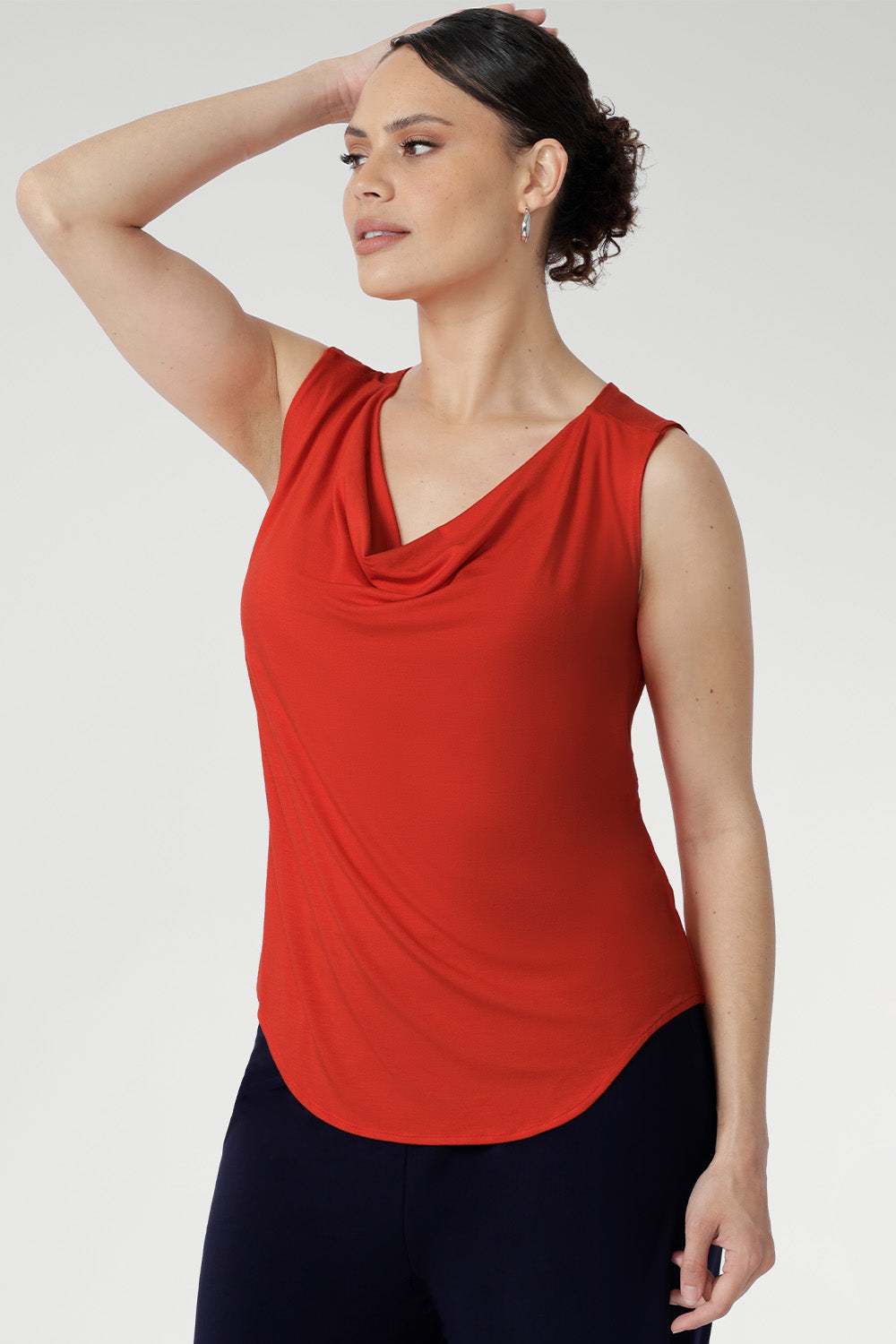 Crafted from our signature slinky jersey with a cool, silky feel and gentle stretch, the Casey Dress in Summer Bliss combines effortless comfort with feminine flair. Featuring a softly draped cowl neckline, blouson bodice, and an asymmetrical skirt, this piece is finished with shoulder-tucked sleeves and a striking floral print. A lightweight favourite for holidays, weekends, and sun-soaked days. Proudly made in Australia.