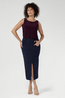 Prefer something more feminine? Our Aaron Midi Skirt is tailored to hug the waist comfortably without shifting or bunching as you move. A great women’s work skirt should hold its shape while allowing room to walk and sit with ease. Whether you prefer pants for their androgynous edge or skirts for their classic polish, the key is choosing what feels most powerful for you.