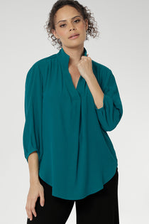- Bowie Top in Panthera - a softly structured statement piece featuring a dramatic sleeve and fluid drape, now reimagined in our bold new animal print.