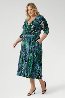 Pair the Germaine Skirt in Cosmic Animal with the Arley Shirt in Jewel for a coordinated, high-fashion look or embrace the top-to-toe glam with Fiona Wrap Dress in Cosmic Animal.