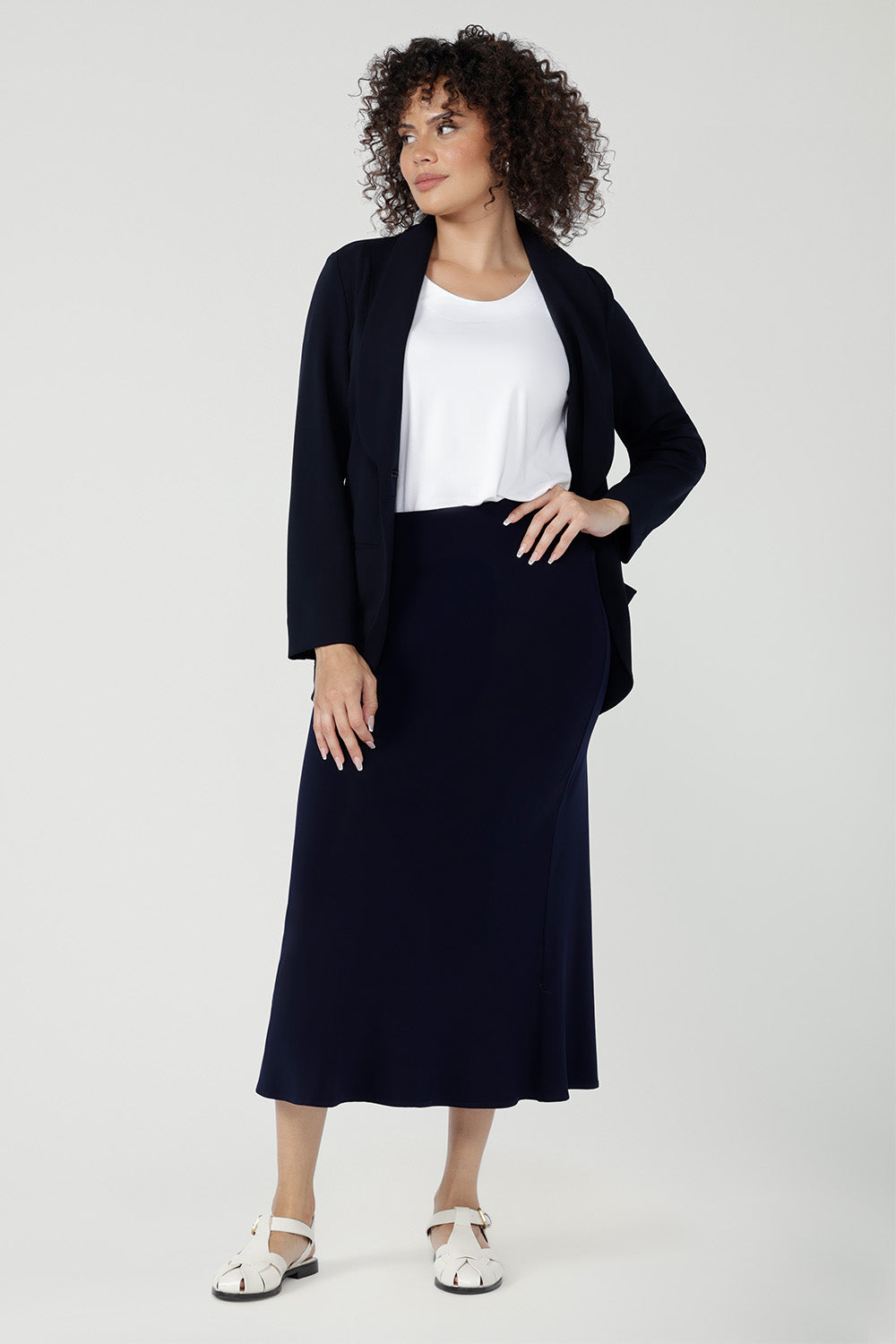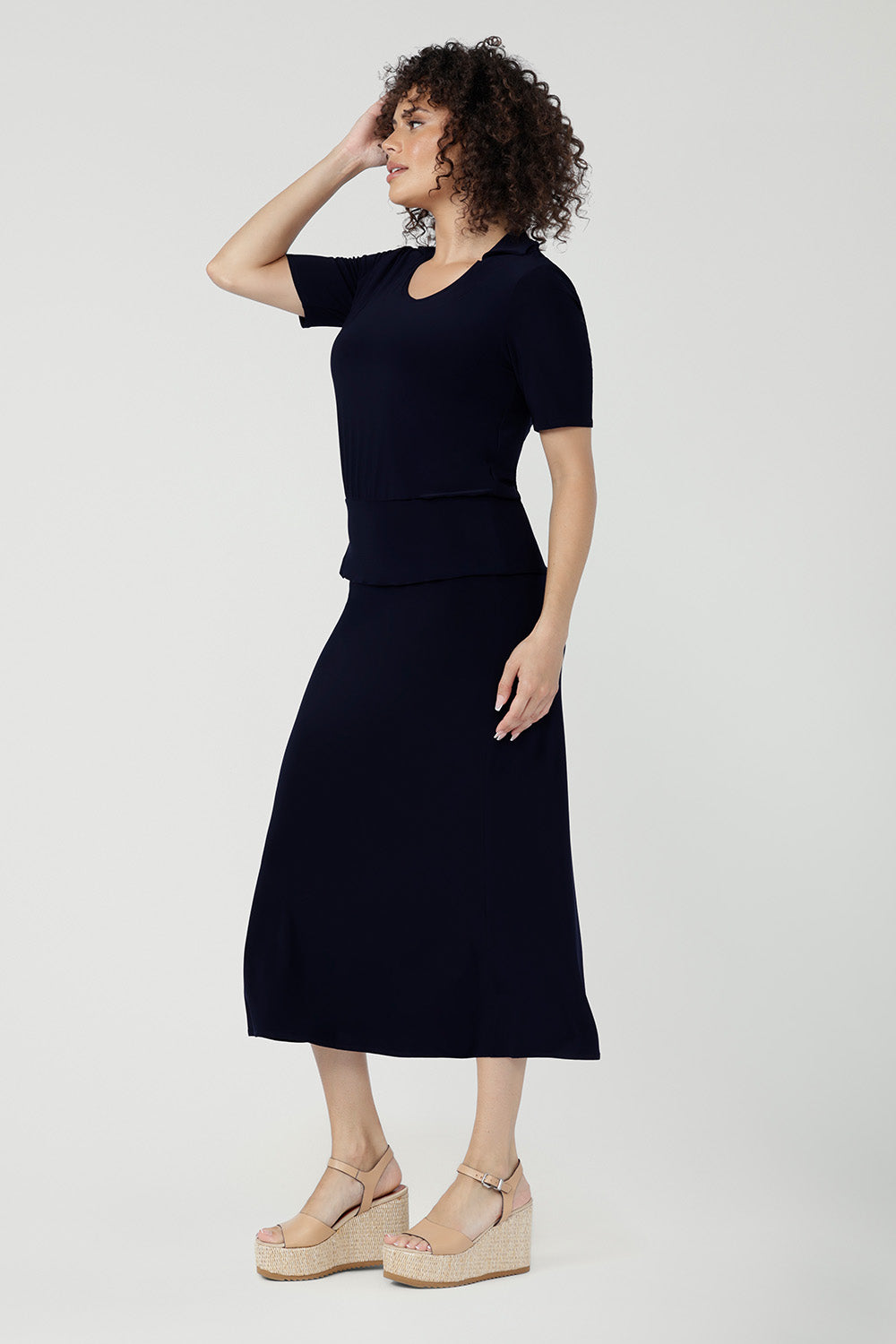 Crafted from our signature dry-touch stretch jersey, the Asher Skirt offers a comfortable, streamlined fit with an easy pull-on, elasticated waist, and a refined A-line shape. Designed with comfort and movement in mind, Asher is perfect for effortless styling from work to weekend. Proudly designed and made in Australia.