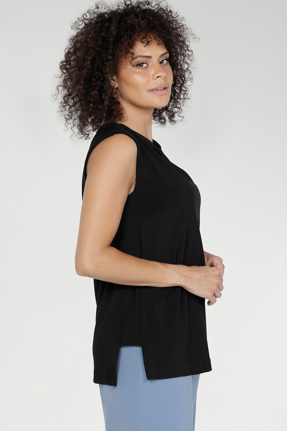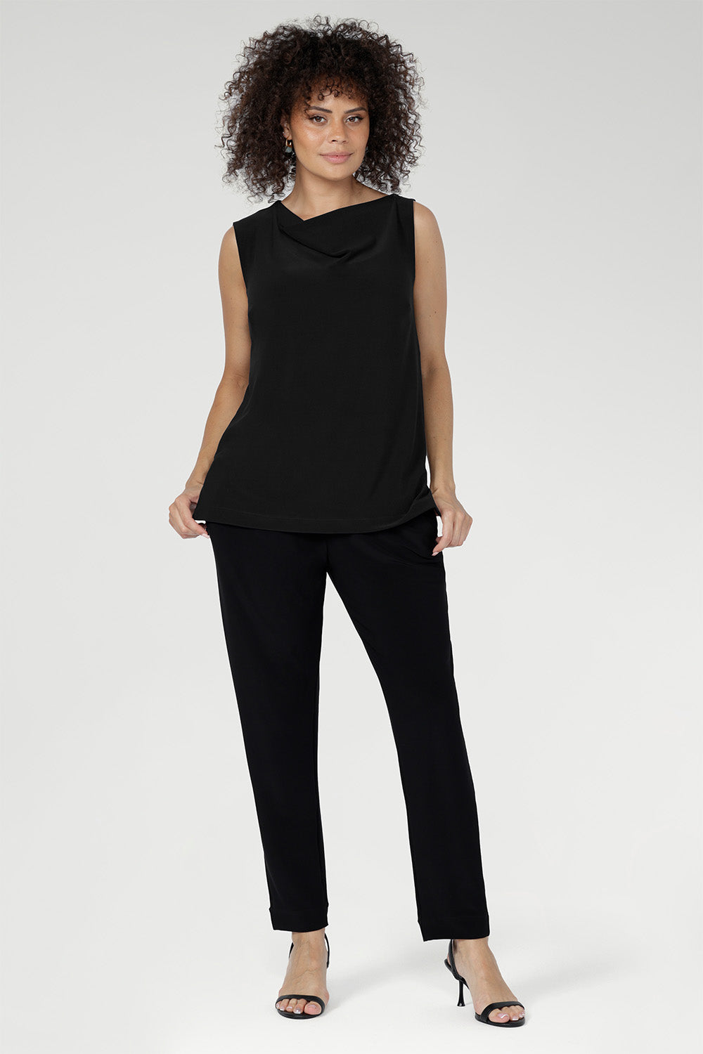 Crafted from soft dry-touch jersey with gentle stretch, the Cory Tunic Top is a sleek sleeveless style for effortless versatility. Smooth on the body, it features a softly draped cowl neckline and bust darts for subtle shaping. Side panel detailing refines the silhouette, with an optional belt for adjustable styling. Made in Australia.