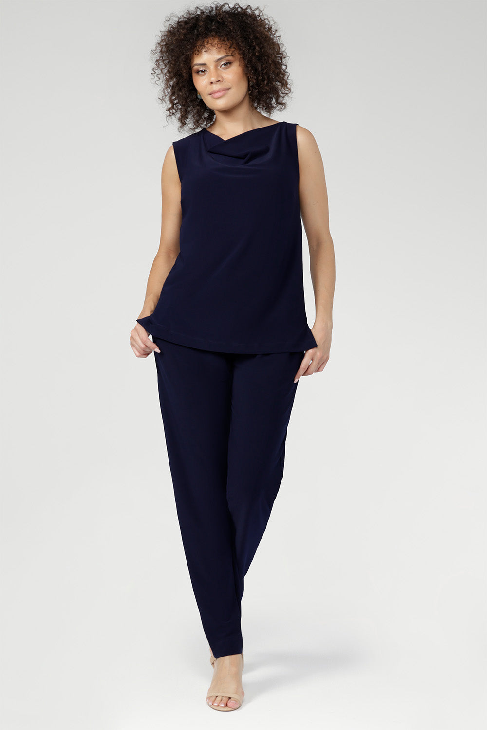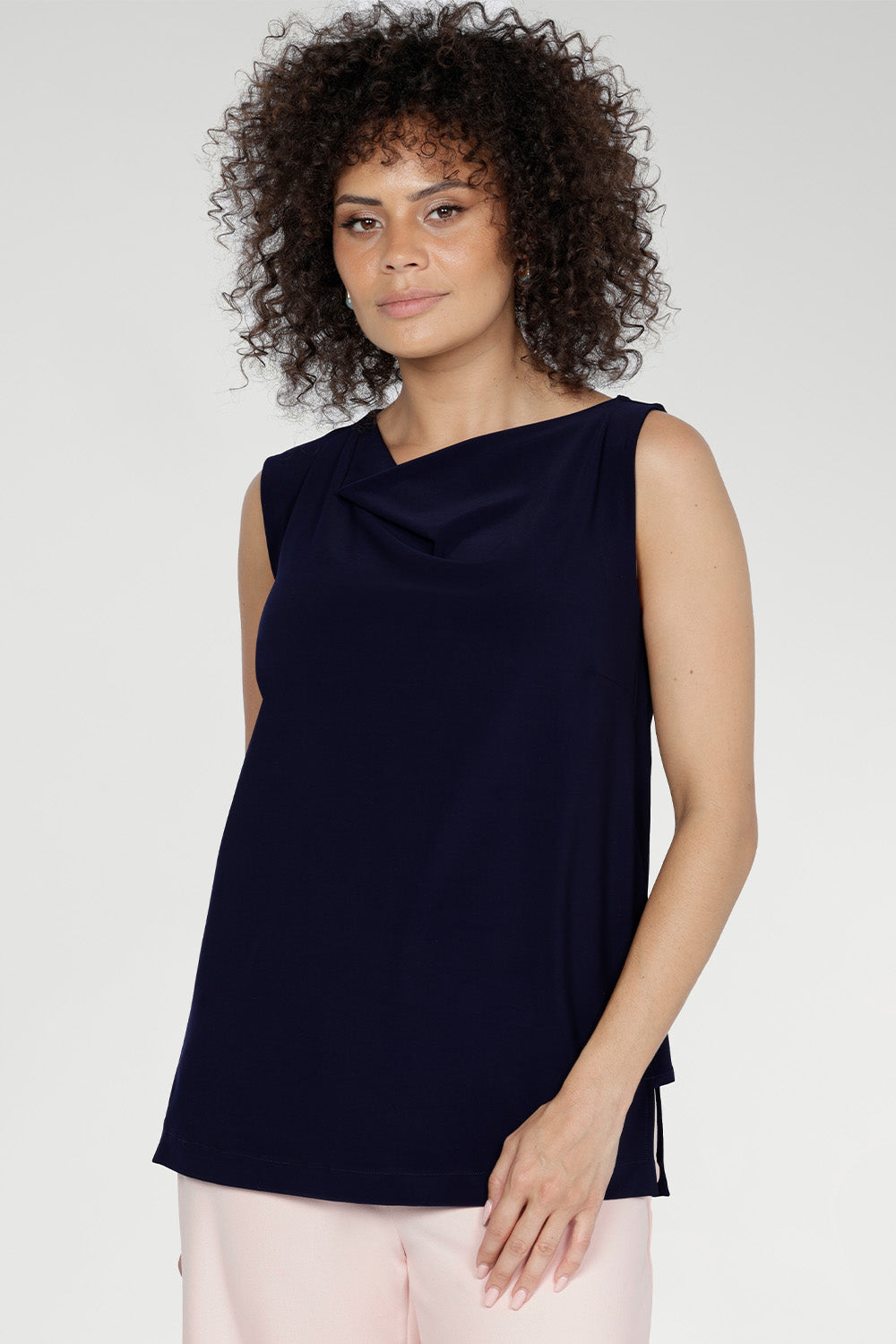 Crafted from soft dry-touch jersey with gentle stretch, the Cory Tunic Top is a sleek sleeveless style for effortless versatility. Smooth on the body, it features a softly draped cowl neckline and bust darts for subtle shaping. Side panel detailing refines the silhouette, with an optional belt for adjustable styling. Made in Australia.