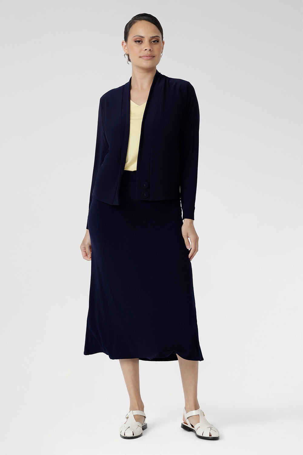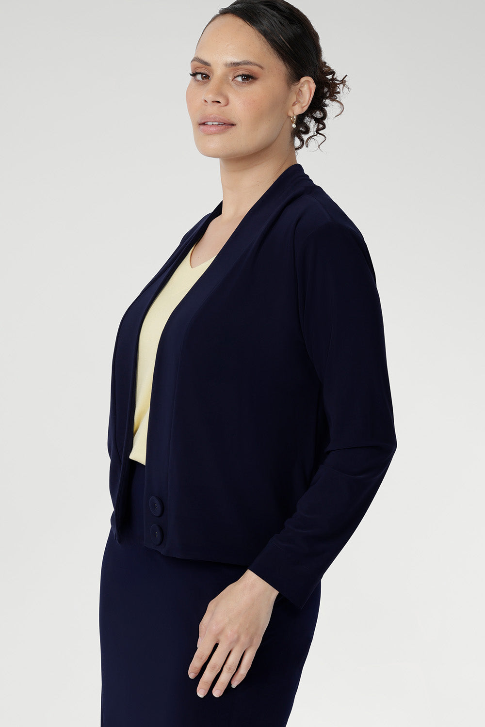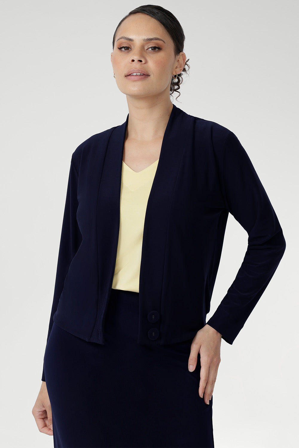 Crafted from our premium heavy-weight dry-touch stretch jersey fabric, Sandro is a jacket-like cardigan designed to blend form and function - offering effortless sophistication that works from office meetings to after-hours events.