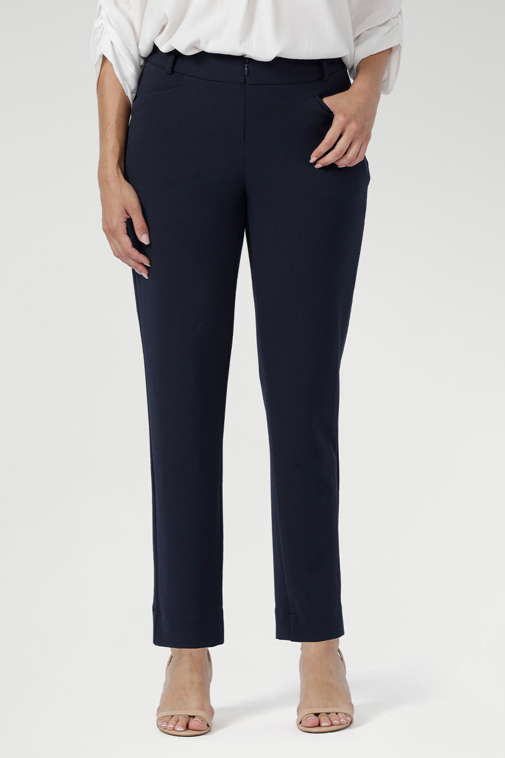 I purchased three pairs of Corbin pants in black, navy and wine after an in-person styling session at L&F and they are stylish, comfortable and very flattering. They are also the perfect length for my 165cm height and did not require alteration. The wine colour is beautiful and looks great with a white shirt or cream top. I highly recommend them.