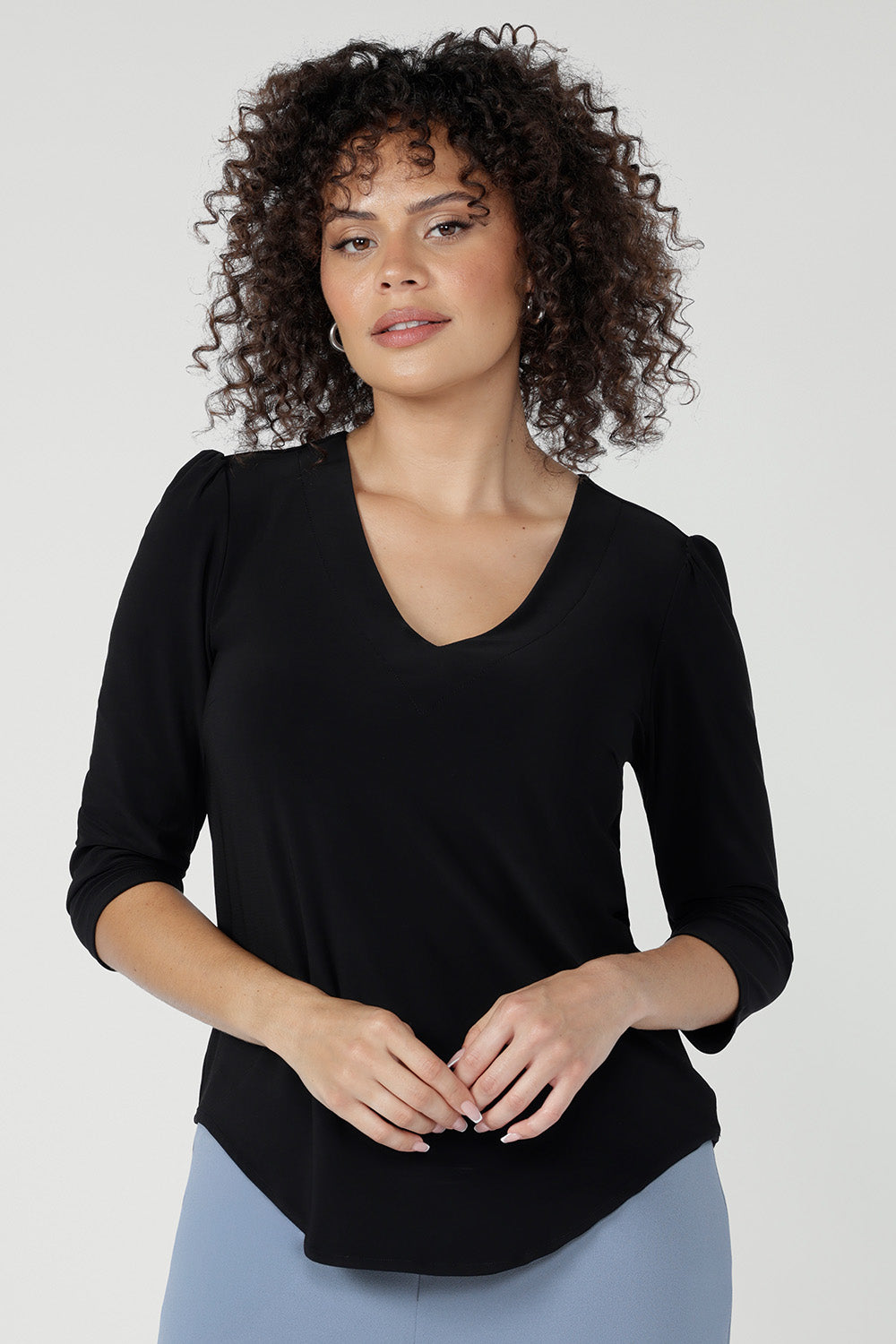 Designed for effortless styling, our black tops can be dressed up or down to suit any occasion. For a polished office ensemble, layer a structured black top under a tailored black jacket or style it with elegant black culotte pants for an all-black power look. If you prefer a feminine touch, pair it with a floral skirt for a softer palette. Crafted from premium fabrics, our black tops are designed for an impeccable fit in sizes 8-24. No matter your style, our collection delivers timeless sophistication with every wear.