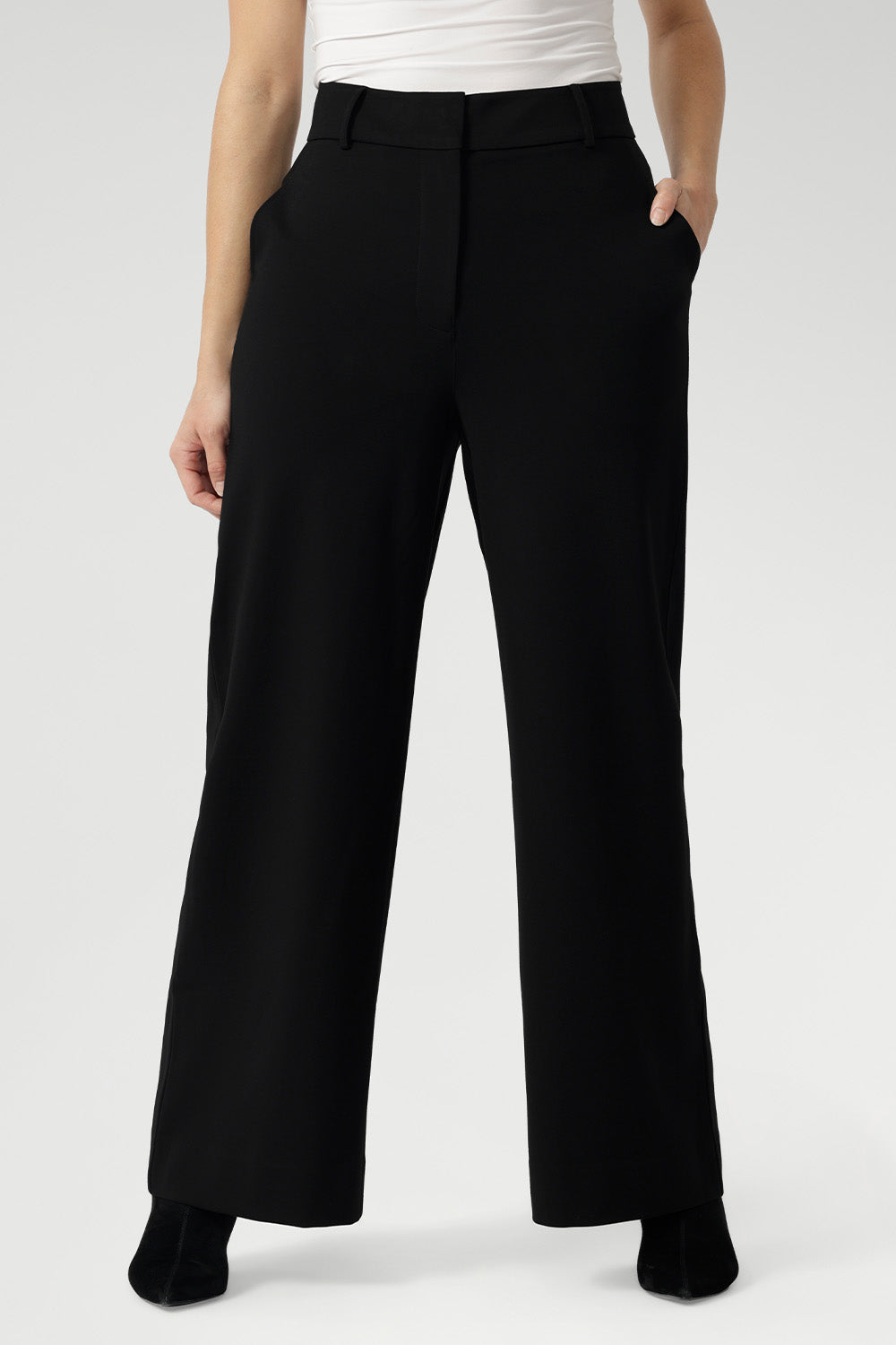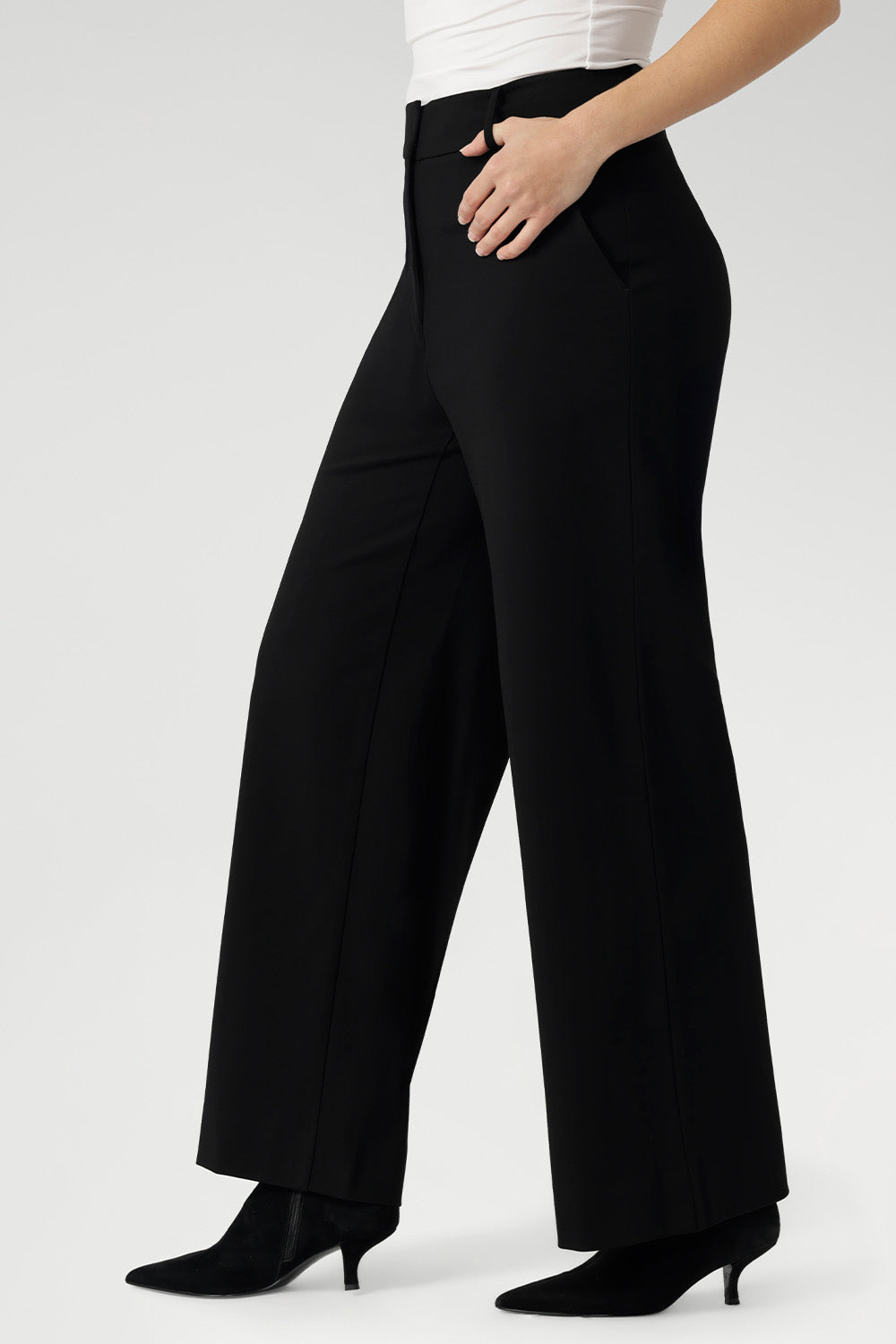 Crafted from a luxe Tech Stretch fabric, the best-selling Wide Leg Pant returns, reimagined to move with real women. Blending timeless tailoring with intelligent design, the high-rise waist, functional fly and waistband, and fluid leg line, offers the ease of movement you love, with the polish you need.
