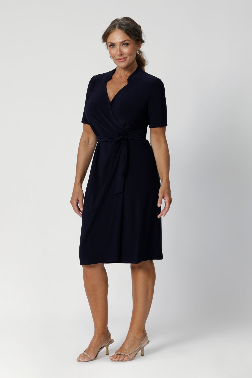Crafted from our signature dry-touch stretch jersey, the Kris Wrap Dress, offers a seamless display of style and comfort. This functional wrap dress boasts a sophisticated mandarin collar, adding a touch of refinement to its design. Tailored for the corporate setting, it strikes the perfect balance between professional elegance and ease, making it an essential wardrobe staple for a polished and comfortable workday ensemble.