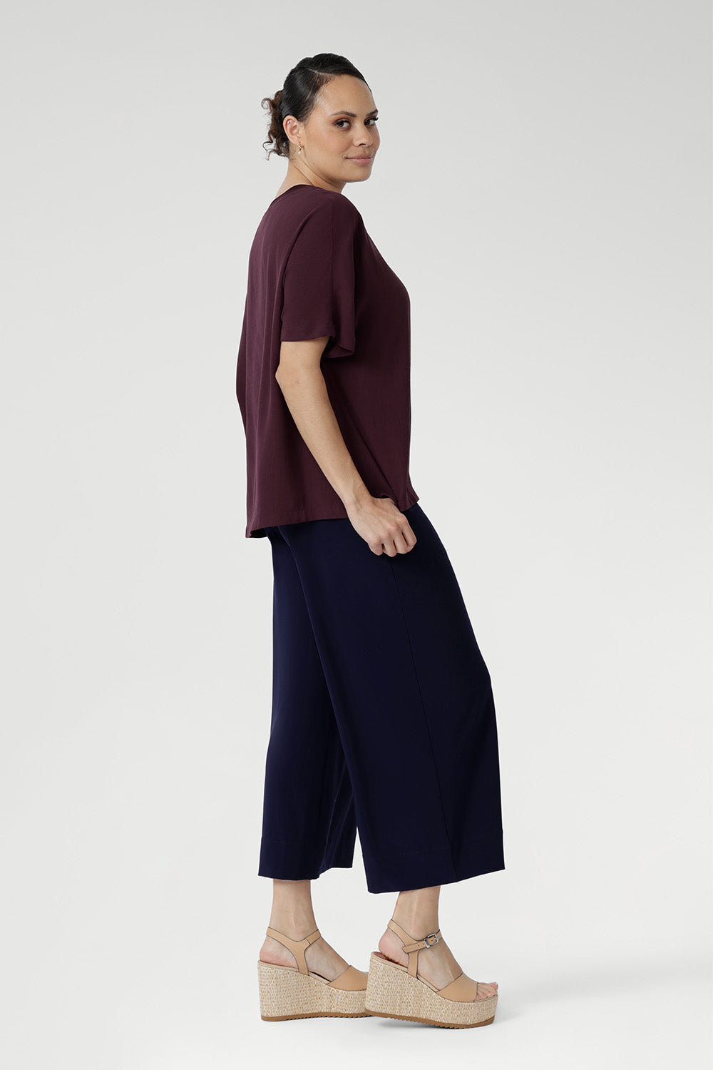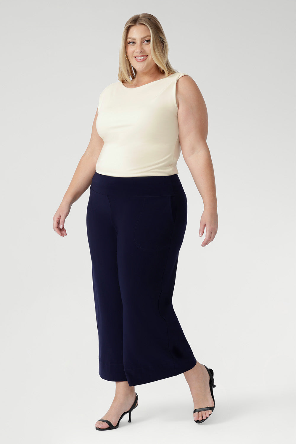 I’m tall so these culottes sit at 3/4 length on me. They are perfect for summer and work well with compression tights underneath. I own them in a range of colours and the navy pair go with most of my L&F tops.
