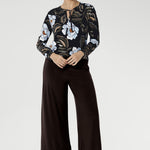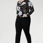 Crafted from our signature dry touch stretch jersey, the Finn Top has a tailored shape with a flattering V-neck, chic neck-ties to the front that you can tie for a day in the office or leave the open for your next event, while the shirt-tail hemline creates a flattering shape over your hips.