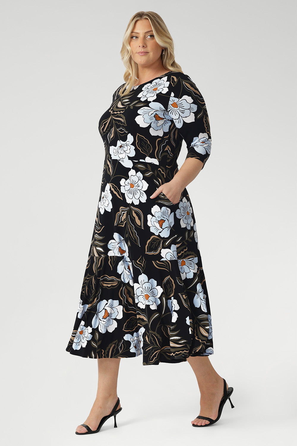 Bettina in black is such a well made practical dress to wear on a daily basis, I wear this lovely dress to work and feel comfortable going to dinner wearing the same dress, this dress is so classy and is also perfect for Evening wear/formal wear. It’s design is perfect with in flowing full skirt, just love the way it feels when I walk.