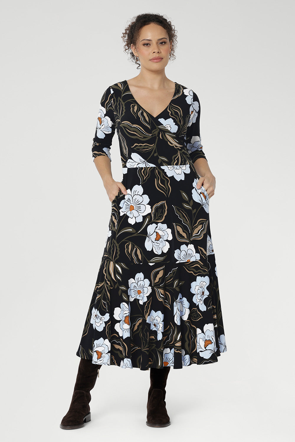 Bettina in black is such a well made practical dress to wear on a daily basis, I wear this lovely dress to work and feel comfortable going to dinner wearing the same dress, this dress is so classy and is also perfect for Evening wear/formal wear. It’s design is perfect with in flowing full skirt, just love the way it feels when I walk.
