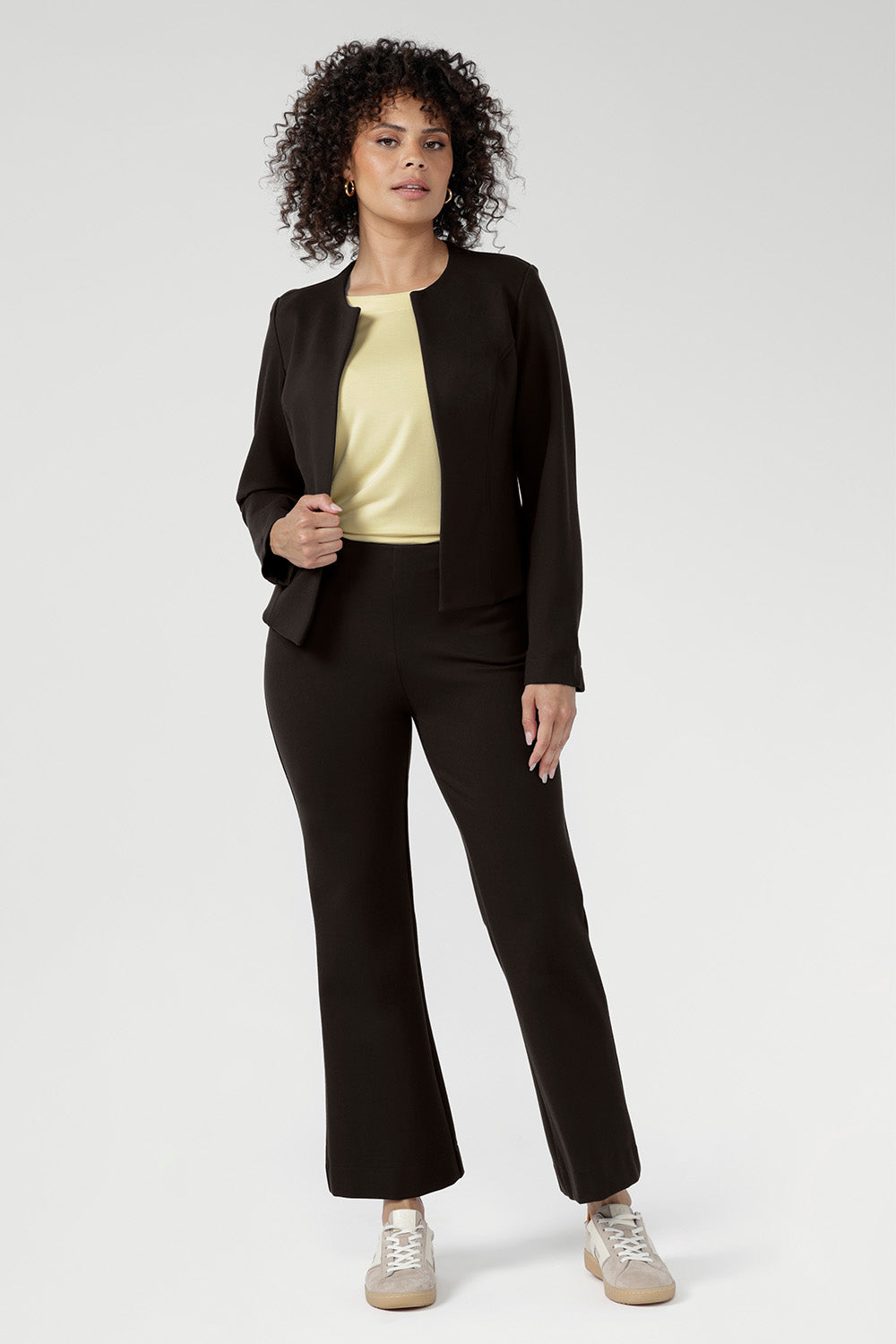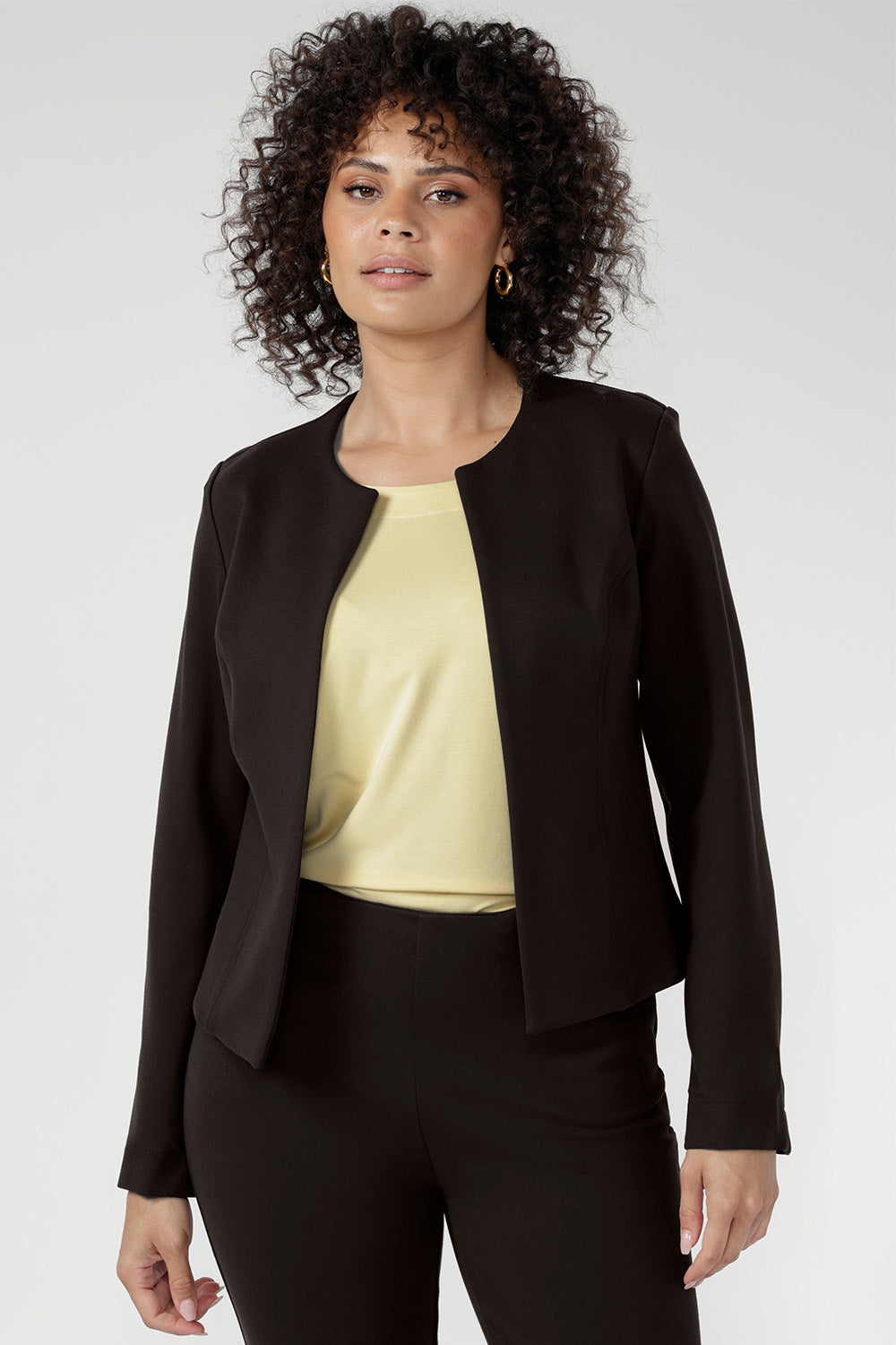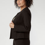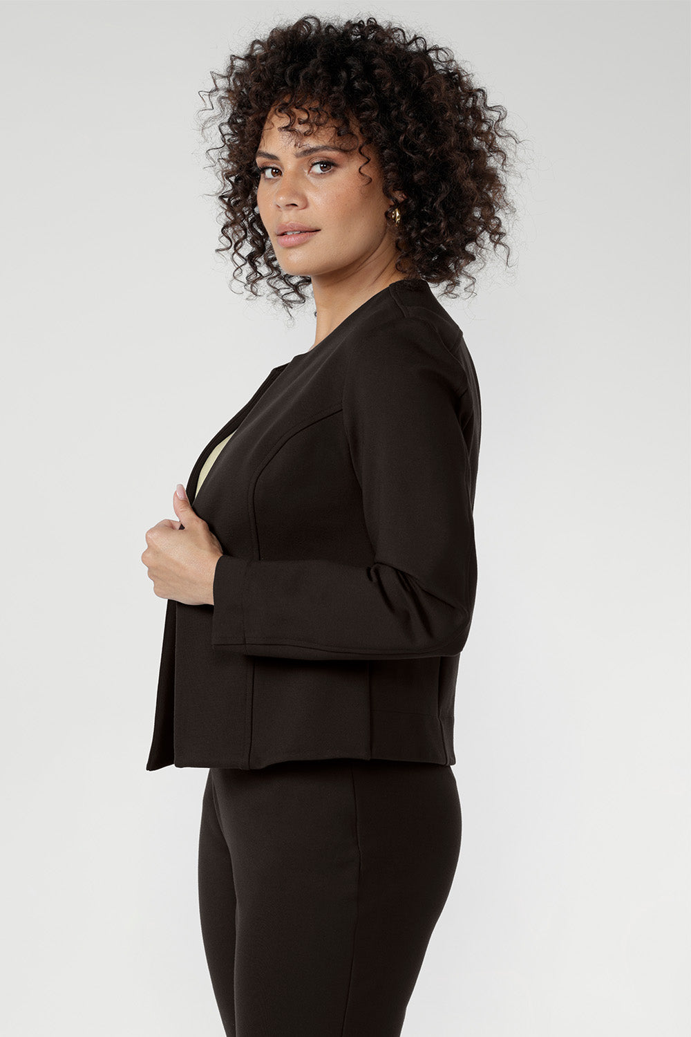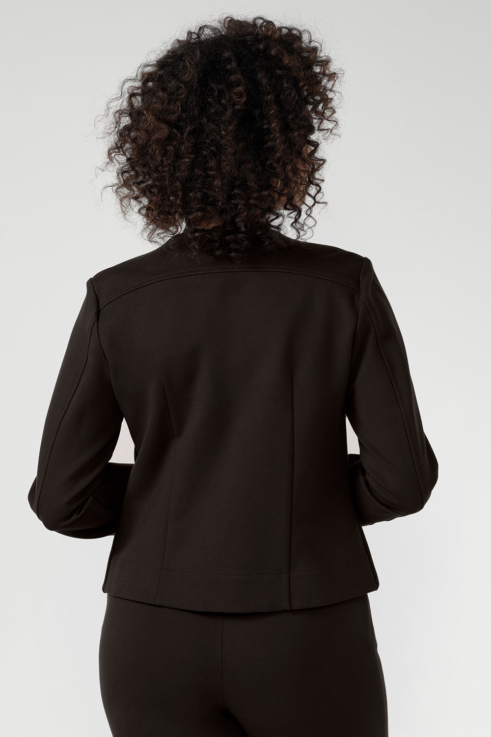 Crafted from a premium dry-touch Ponte jersey fabric, the Drake Jacket brings contemporary chic to your capsule wardrobe. A modern cropped jacket with clean lines, neat tailoring, and open-front design, it's an effortless layering piece, perfect for work, weekends, and travel.