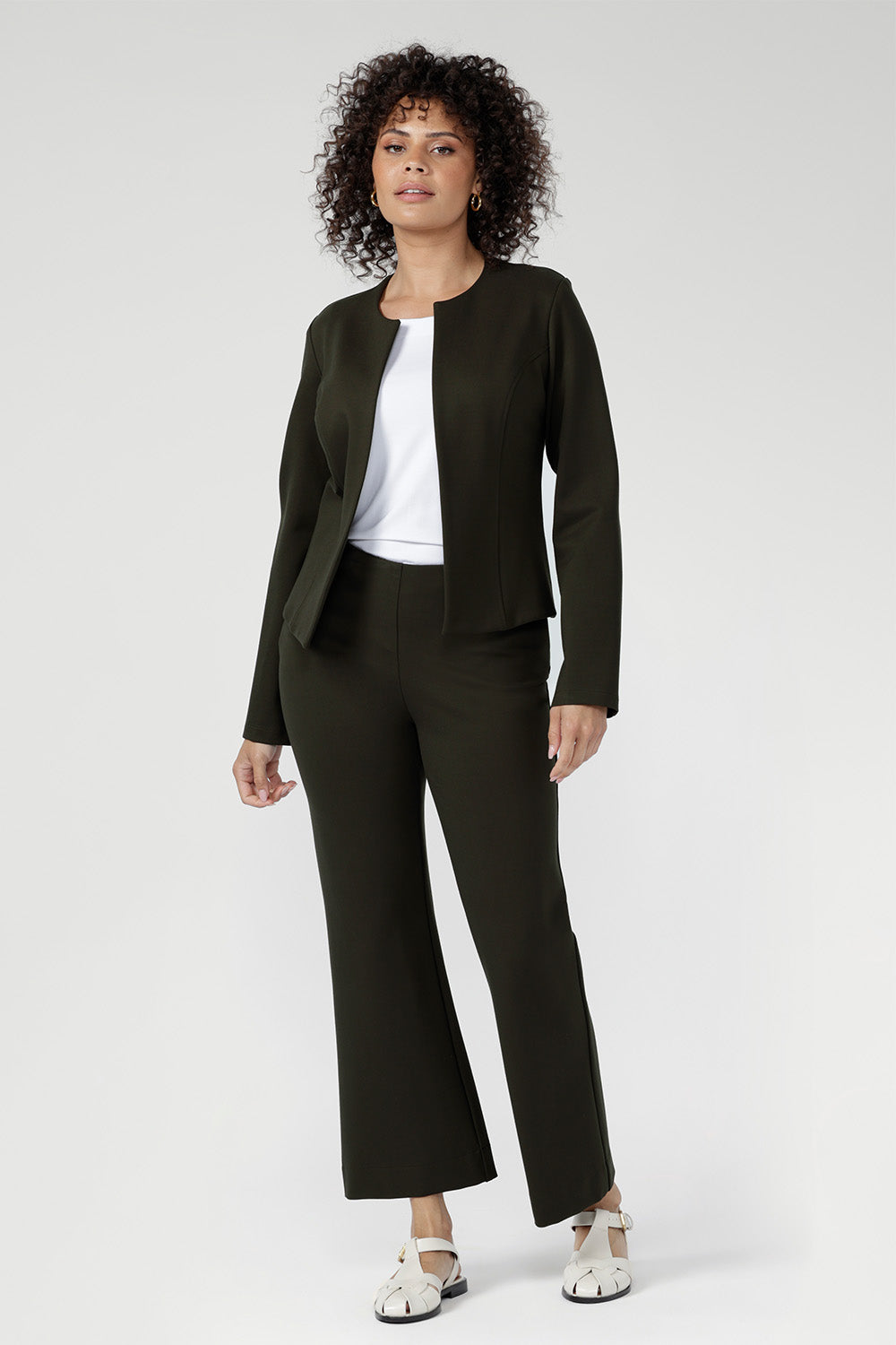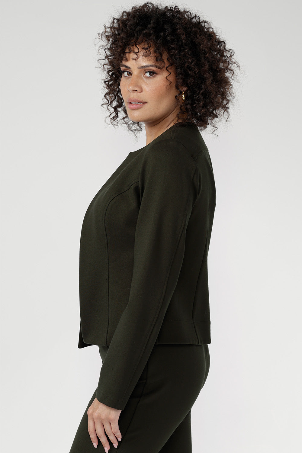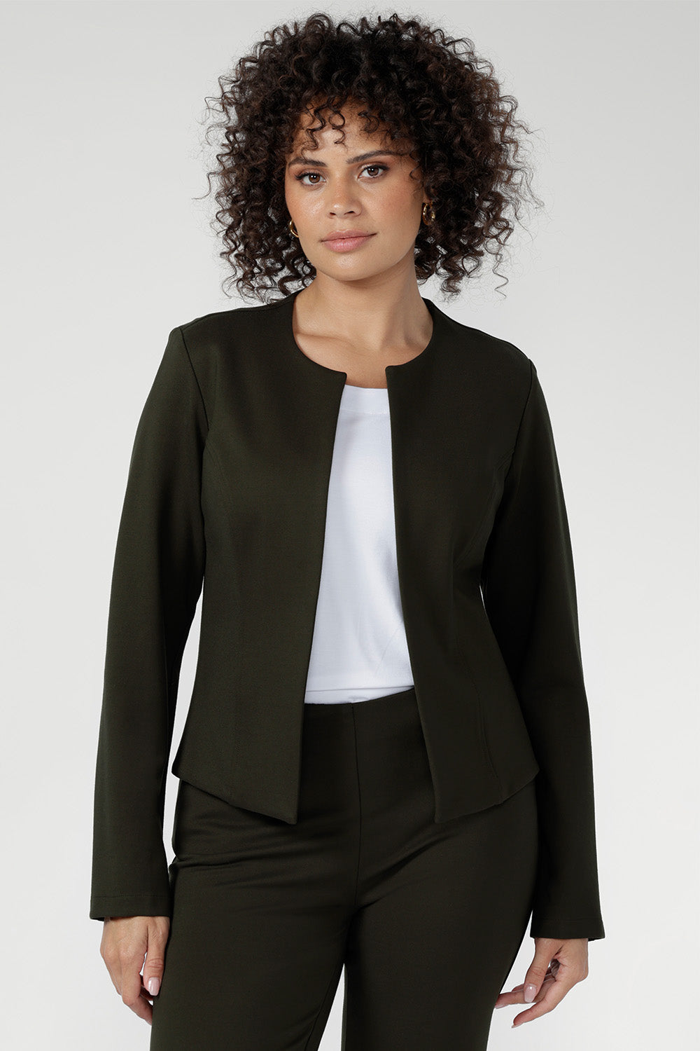 Crafted from a premium dry-touch Ponte jersey fabric, the Drake Jacket brings contemporary chic to your capsule wardrobe. A modern cropped jacket with clean lines, neat tailoring, and open-front design, it's an effortless layering piece, perfect for work, weekends, and travel.