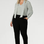 Crafted from our signature dry-touch stretch jersey, the Celine Top is perfect for work or events and can be styled tucked in or out. Soft neckties offer versatile styling options, while the elegant bell sleeves add sophistication and flare.