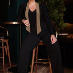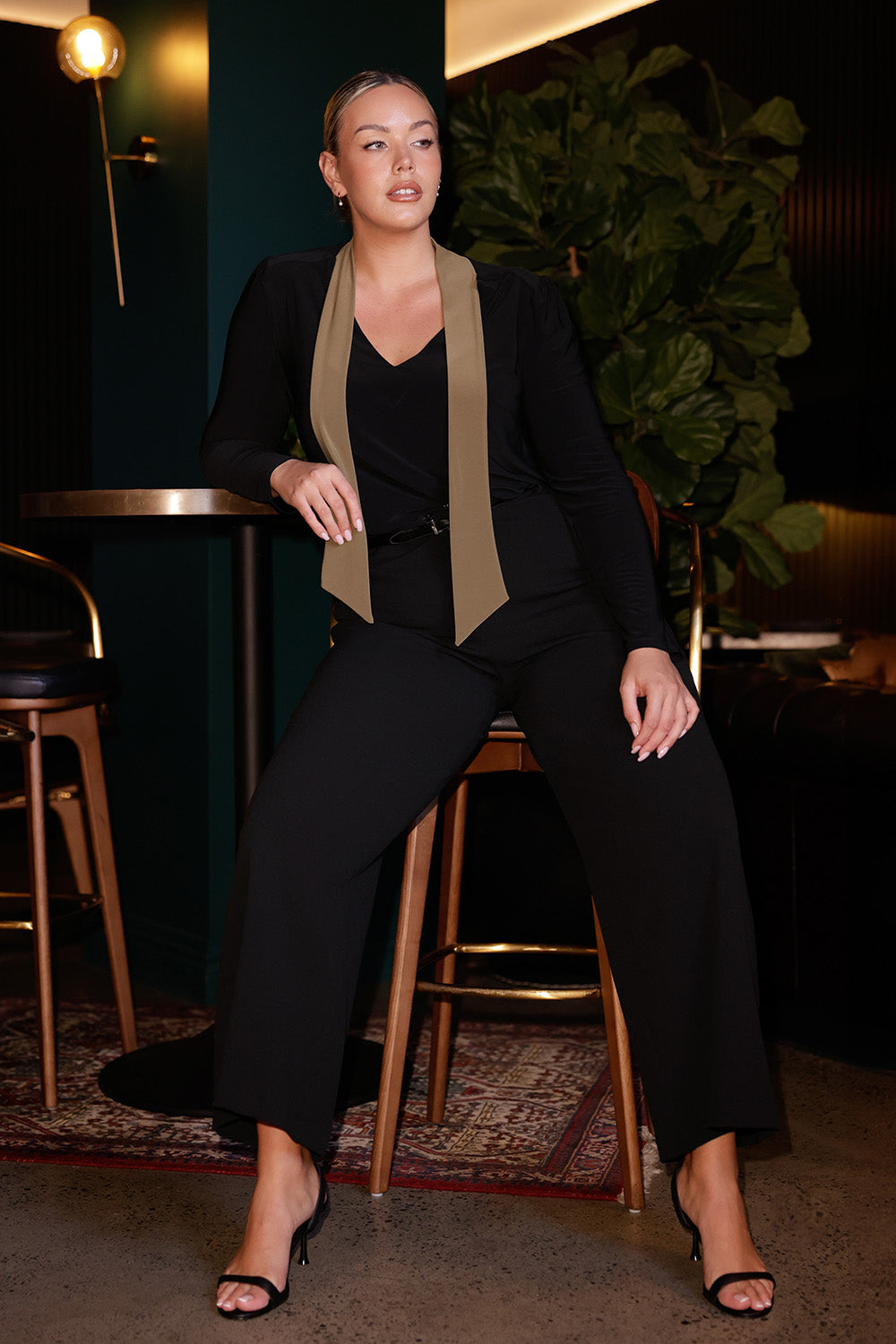 Crafted from our signature dry-touch stretch jersey, the Thom Top in Black is a sophisticated and oh so versatile top, with a flattering V-neck, and chic neck-ties in black to the front that you can tie for a day in the office or leave the open for your next event.