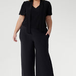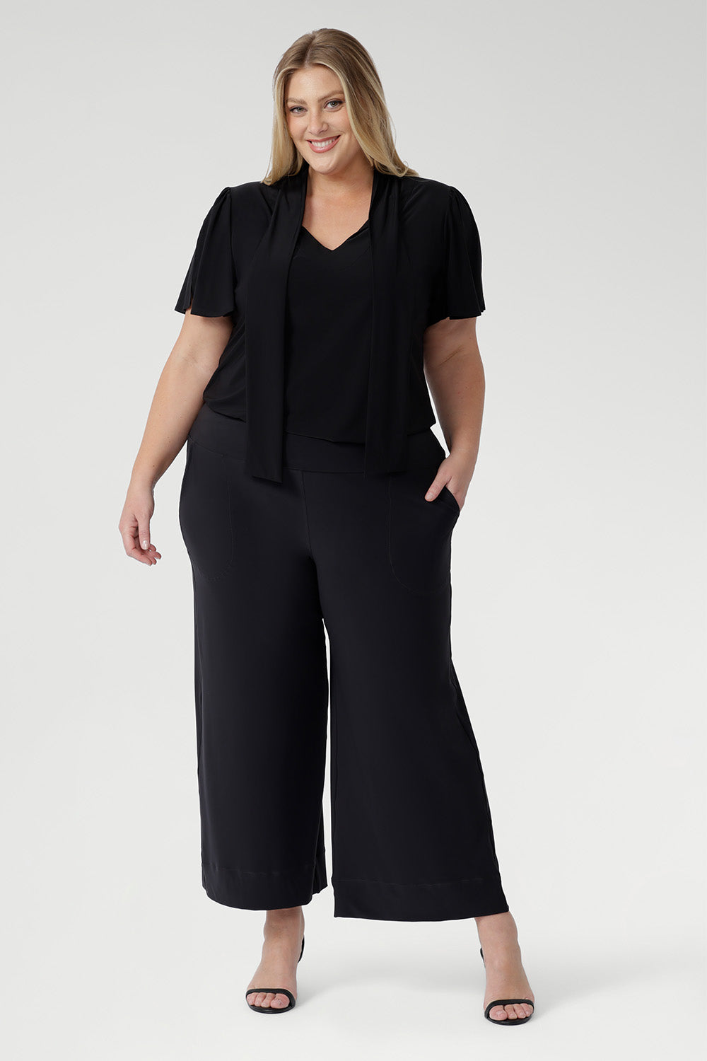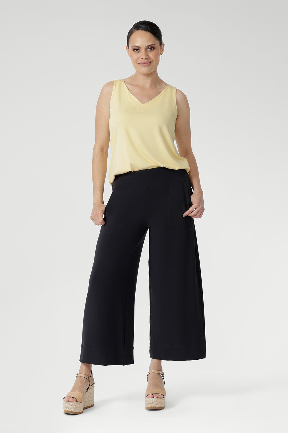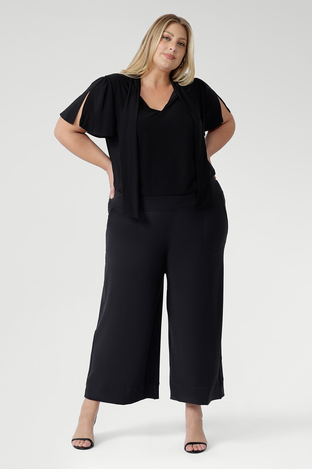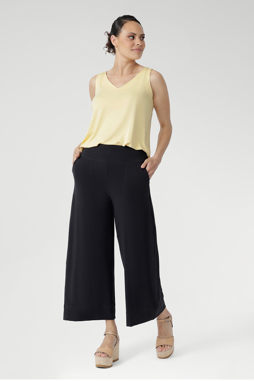 I’m tall so these culottes sit at 3/4 length on me. They are perfect for summer and work well with compression tights underneath. I own them in a range of colours and the navy pair go with most of my L&F tops.