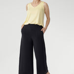 • Extra-wide leg (extreme culotte flare), roomy feel