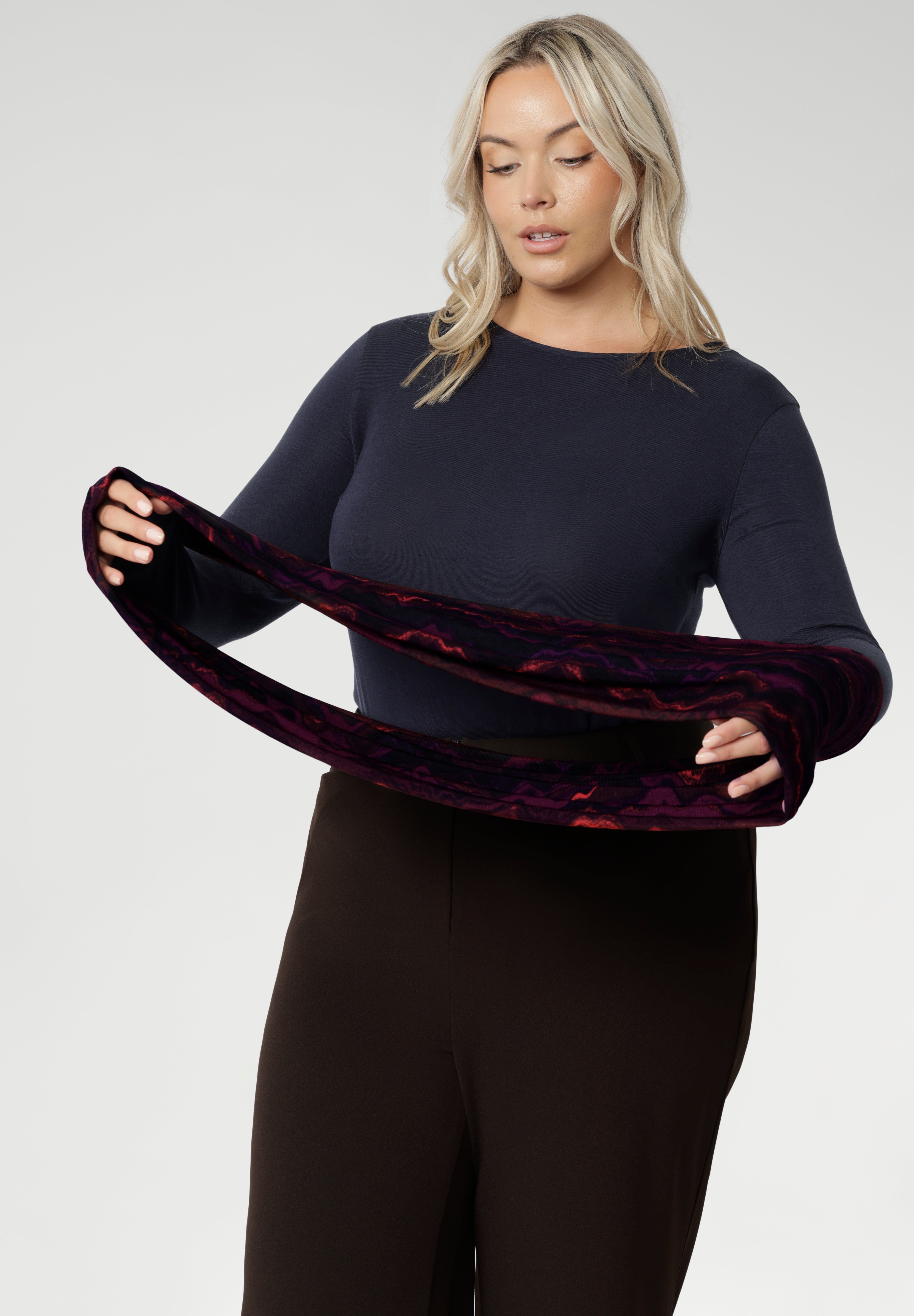 This Infinity Knit Scarf in Lilac is my second of these scarves, the first one being in Navy. I like the Lilac top but it had sold out in my size, so I chose a Sky top and got the scarf in Lilac instead. It turned out to be an excellent choice - I love the Lilac with the Sky and also with the Navy. It goes beautifully with a lot of the purple tones I have in my wardrobe, but I also love matching it with pinks, greens, blues, petrol, etc. I have even intertwined it with the Navy scarf for a two-toned scarf look on a particularly cold day. As with the tops, the fabric is incredibly soft and comfortable, not itchy or sweaty. This style of scarf is longer than the Desiree Infinity Scarf, so it sits a bit looser on a double wrap, but can also be triple wrapped, or looks a bit fancy hanging loose like an extended cowl. Totally recommend.