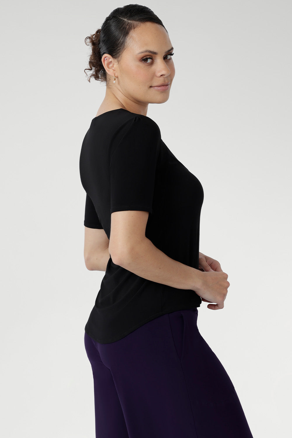 Crafted from our signature dry-touch stretch jersey, the Berni Top's slim fit, subtle structure, and slick short sleeves add assured definition to any outfit. Perfect as a workwear top with pants and jackets, it works for casual wear too.