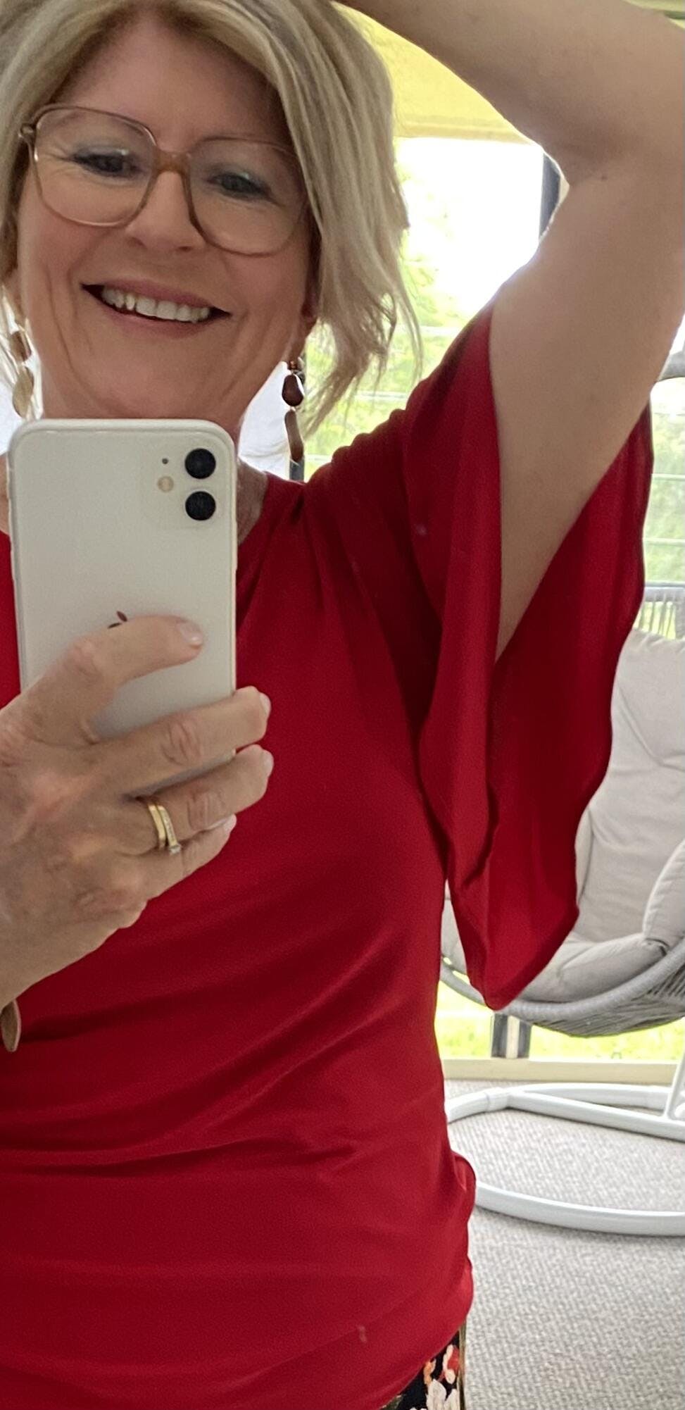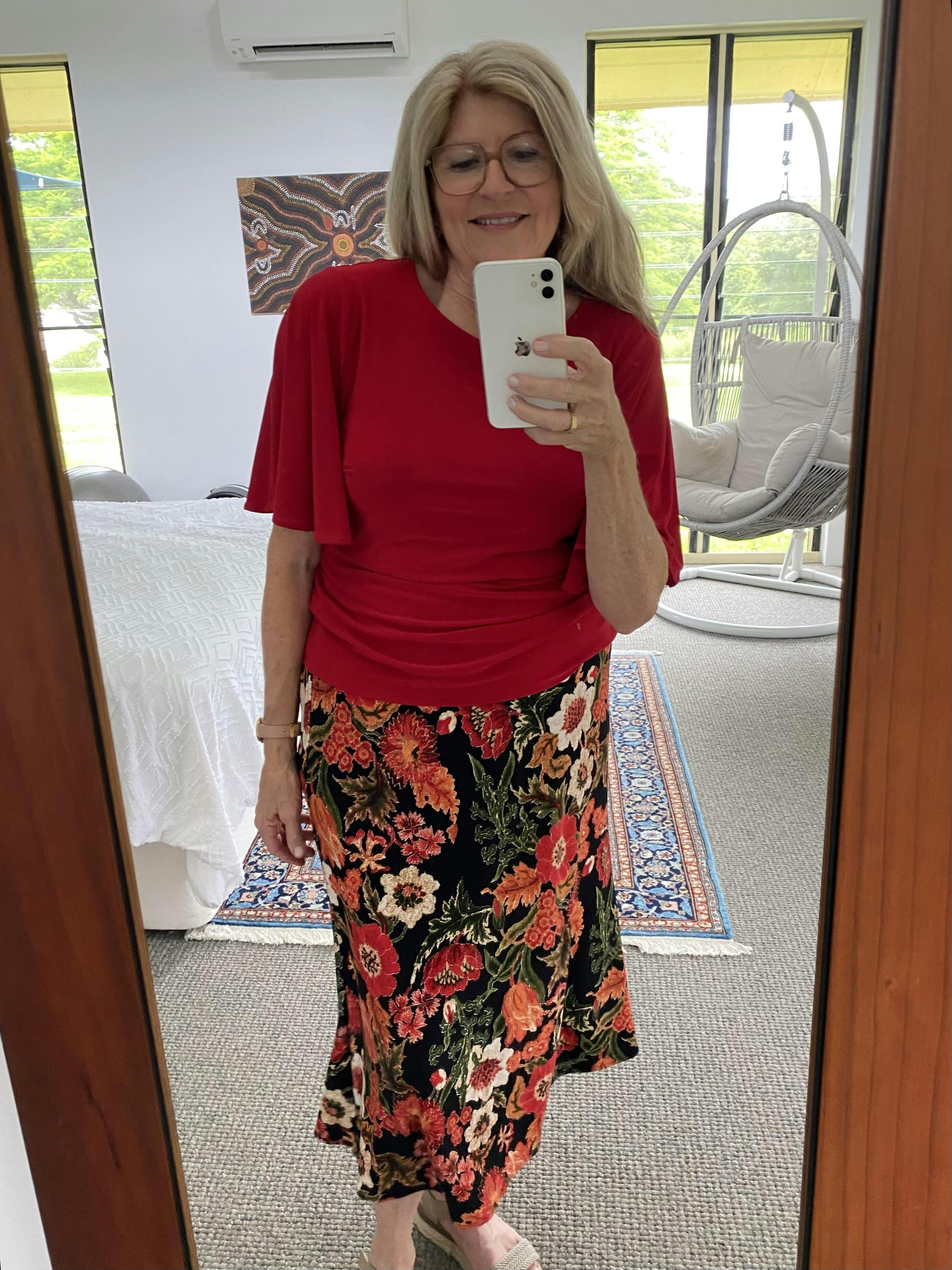 Absolute winner.! My favourite Chloe with her dramatic flutter sleeves in my favourite colour a beautiful true red, perfect for Christmas but will be loved all year round. Another Chloe to add to my growing collection always stylish and comfortable for any occasion.