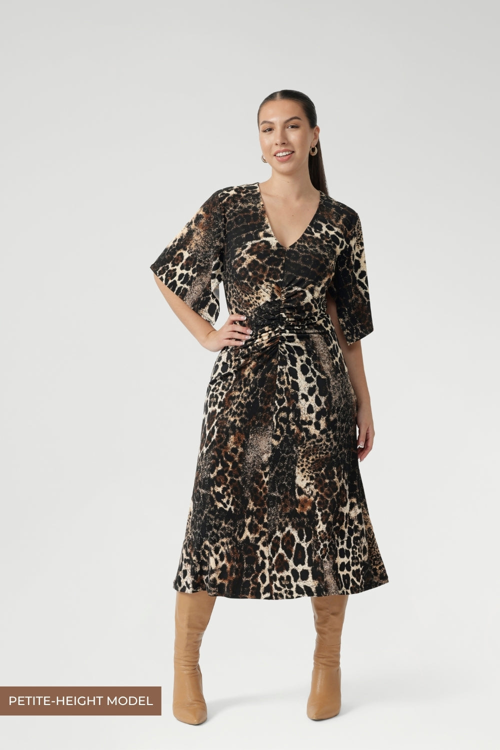 Crafted from our signature dry touch stretch jersey, the new Selina Dress features front and back ruched detailing that enhances shape while adding a touch of texture, offering a flattering, easy-to-wear fit, while the elbow-length handkerchief sleeves bring a soft, flowing elegance.