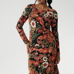 • Stunning floral print with rich tones of burnt orange, black, and Autumn hues