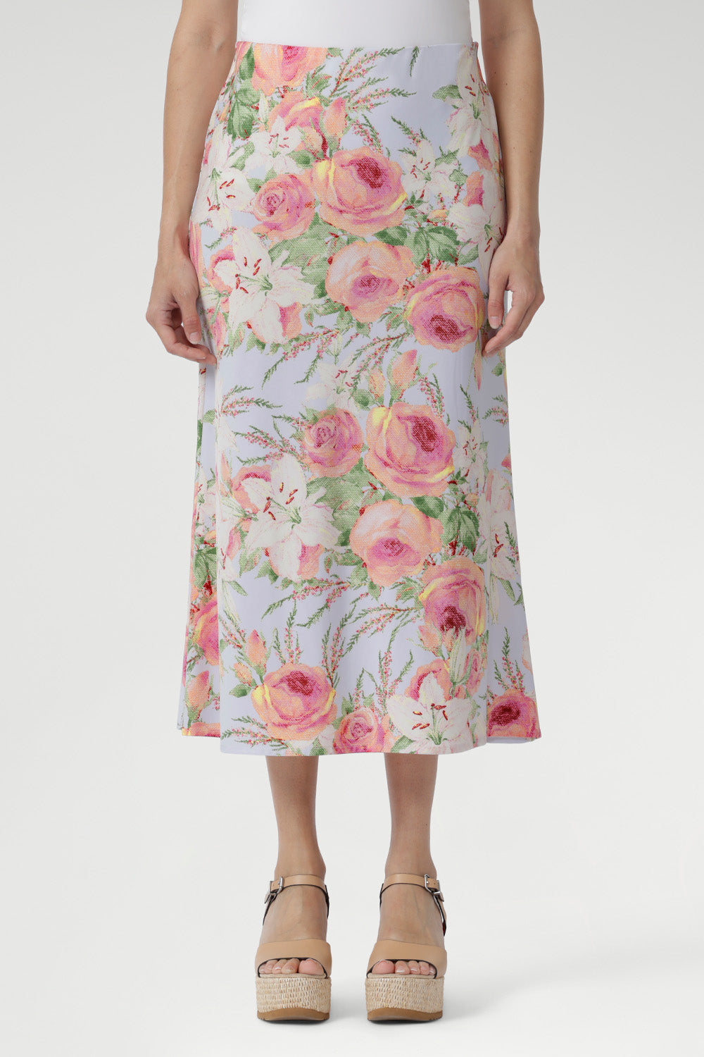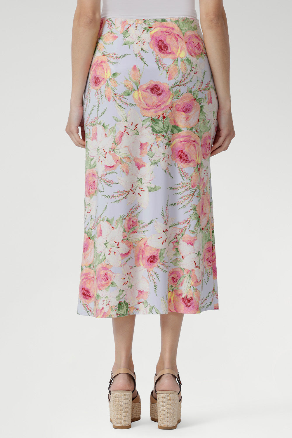 • Bias-cut pull-on skirt with internal elastic at the waist