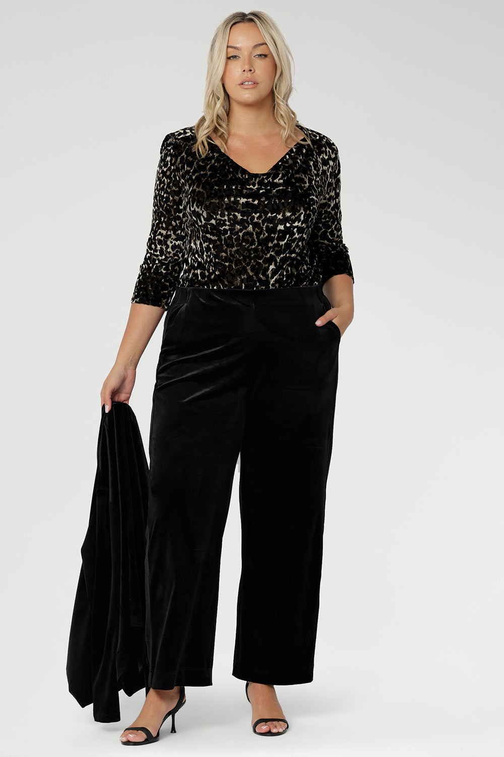 • Crafted from a luxurious velour fabric, with a high sheen finish, velvety hand-feel, and a soft stretch