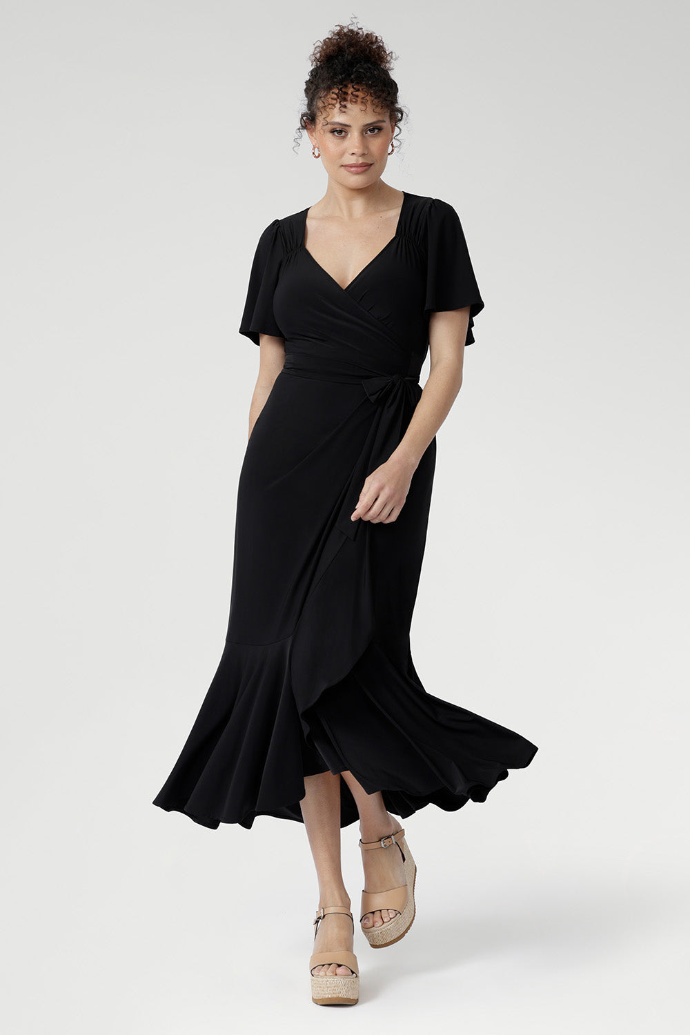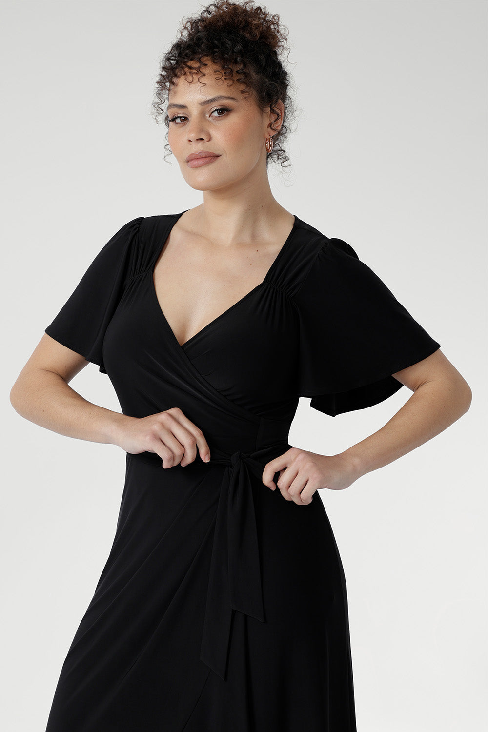 Crafted from a beautifully soft, slinky-jersey fabric, the captivating Alita Wrap Dress in Black. The perfect dress for party season Alita hugs you in all the right places while you dance the night away.