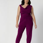 These pants are magic, as comfortable as p.j's while looking so polished, I bought to wear around the house but they are too nice, I have the Vida top in amethyst and together they make a smart outfit, also wear with a black vida top. So happy, need to buy a 2nd pair, in navy I think