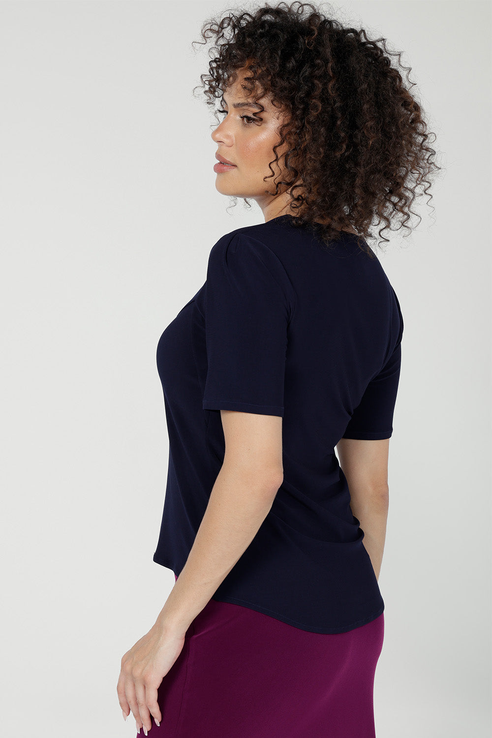 Crafted from our signature dry-touch stretch jersey, the Berni Top's slim fit, subtle structure, and slick short sleeves add assured definition to any outfit. Perfect as a workwear top with pants and jackets, it works for casual wear too.