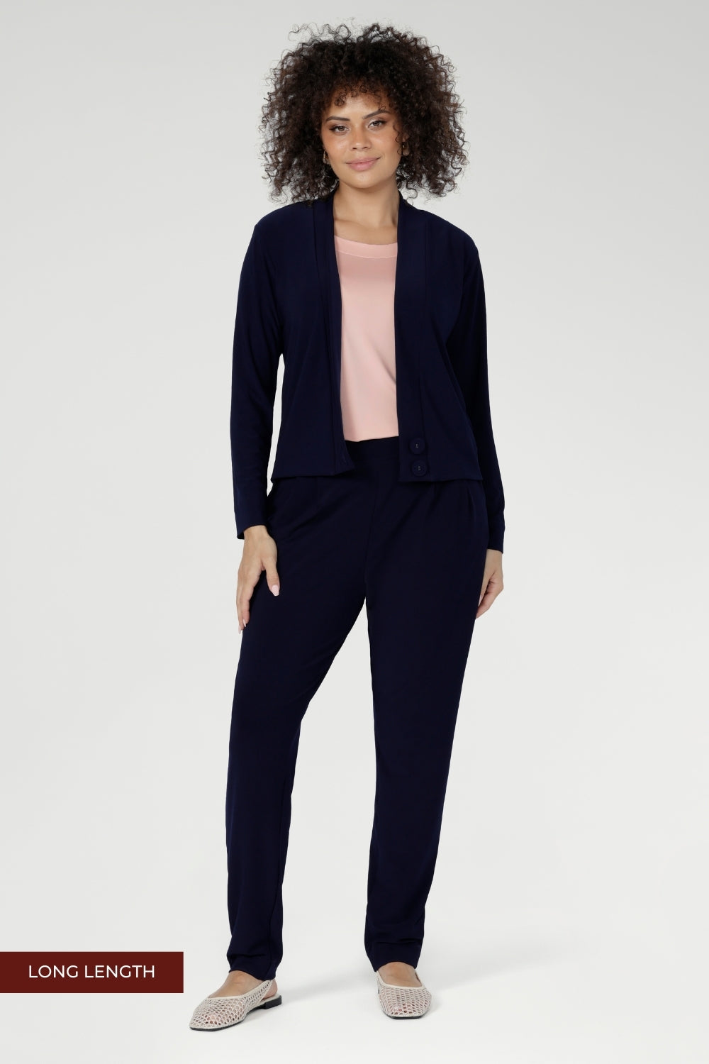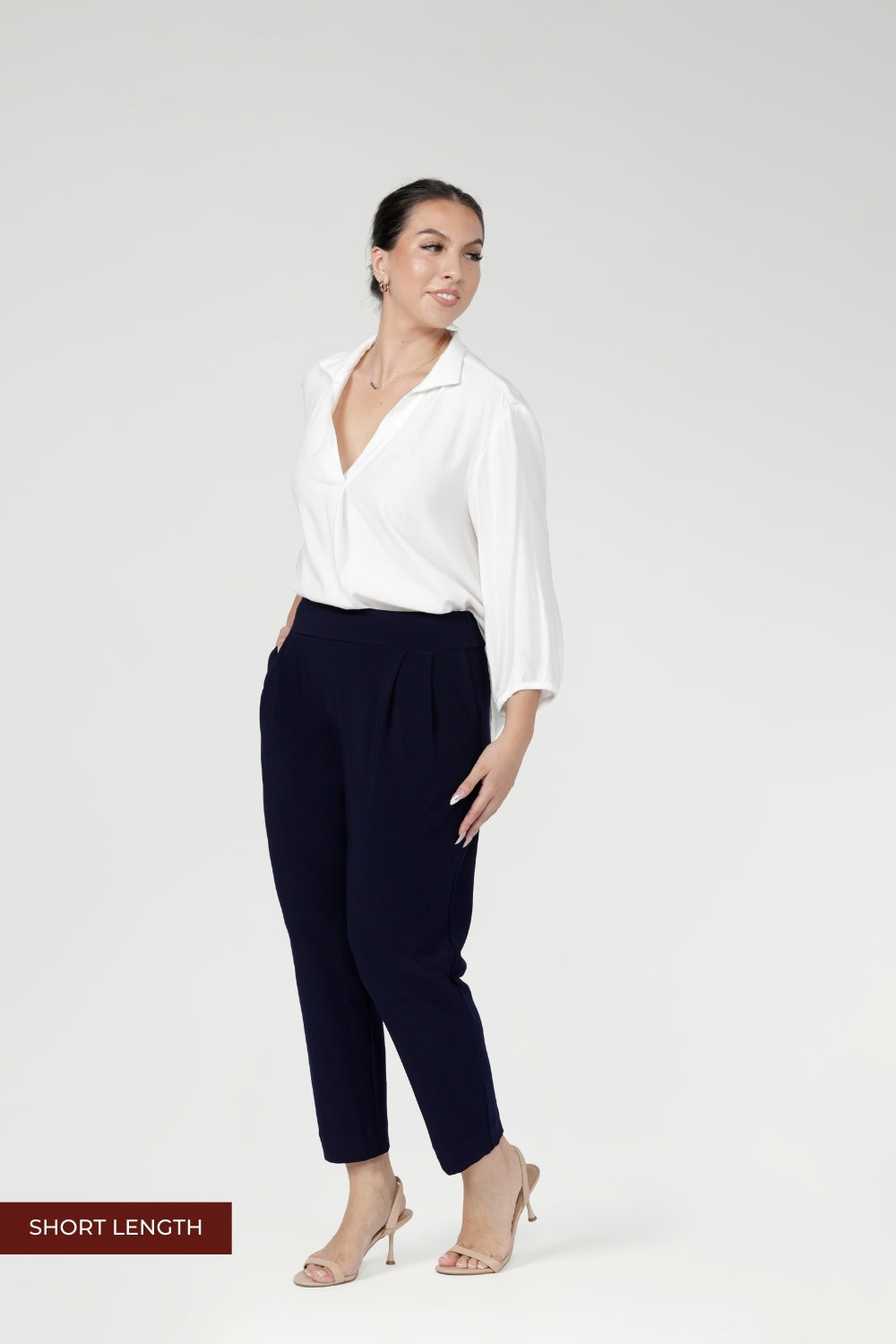 Got these on sale for my mum as well as the Indi pant - the Tobie fabric is slightly thicker & sits nicely as a straight leg to the ankle. There's enough hem if a little extra length is needed. Definitely a solid wardrobe staple pant.