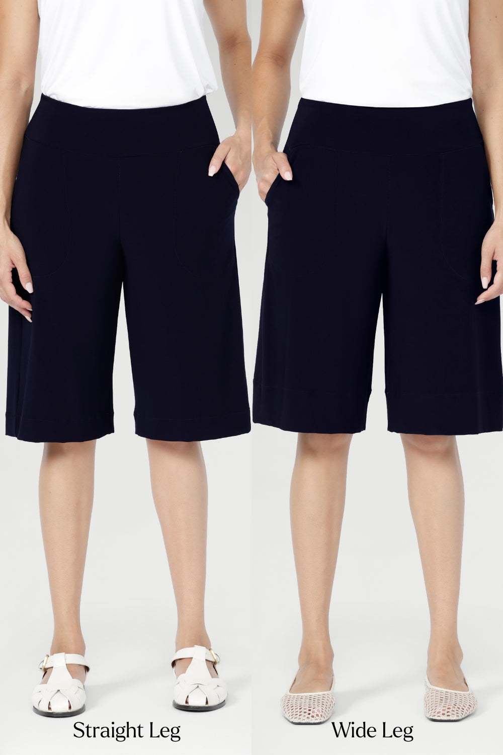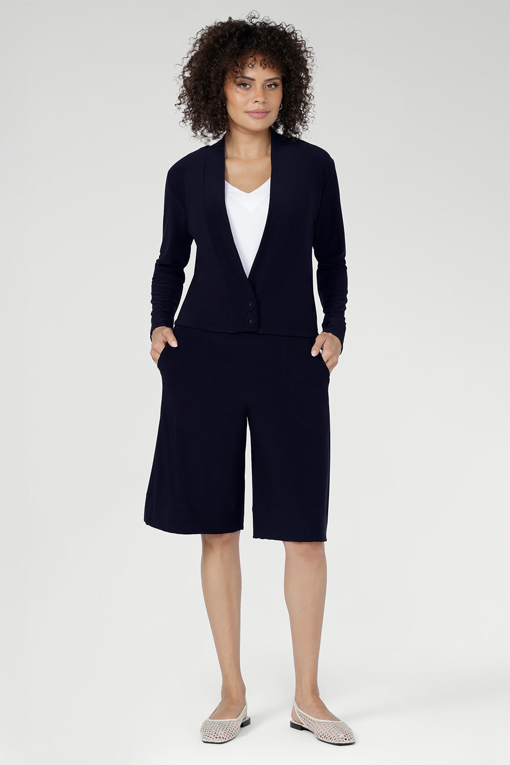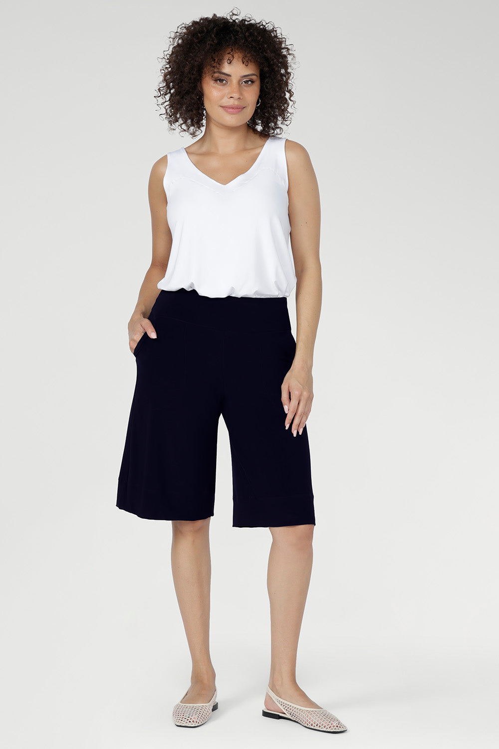 Crafted from luxe dry-touch jersey, the Bermuda Short is a refined pull-on style for everyday ease. Soft on the skin, it features a double-layer waistband and side pockets with clean topstitching. The knee-length cut offers comfort and polish, with two width options to suit your style. Made in Australia.