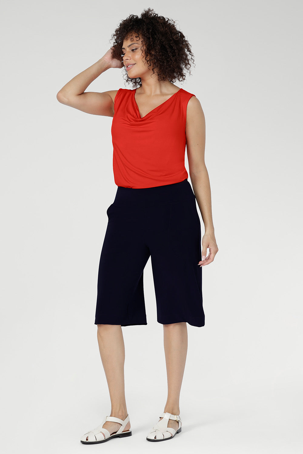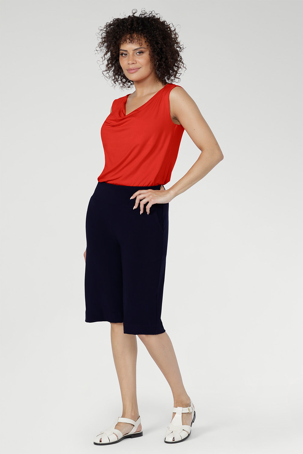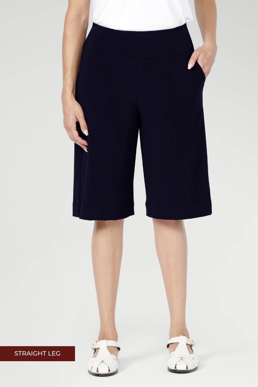 Crafted from luxe dry-touch jersey, the Bermuda Short is a refined pull-on style for everyday ease. Soft on the skin, it features a double-layer waistband and side pockets with clean topstitching. The knee-length cut offers comfort and polish, with two width options to suit your style. Made in Australia.