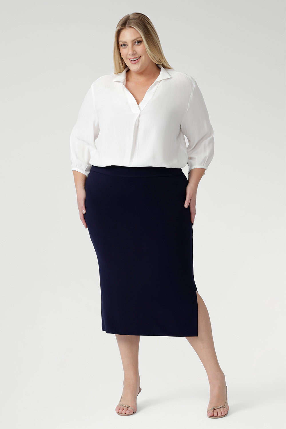 Crafted from our signature dry-touch stretch jersey, the Andi Midi Tube Skirt is a sophisticated mid-calf length skirt with a side-split, and offers a comfortable, streamlined fit with an easy pull-on, elasticated waist. This versatile midi skirt is perfect for effortless styling from work to weekend.