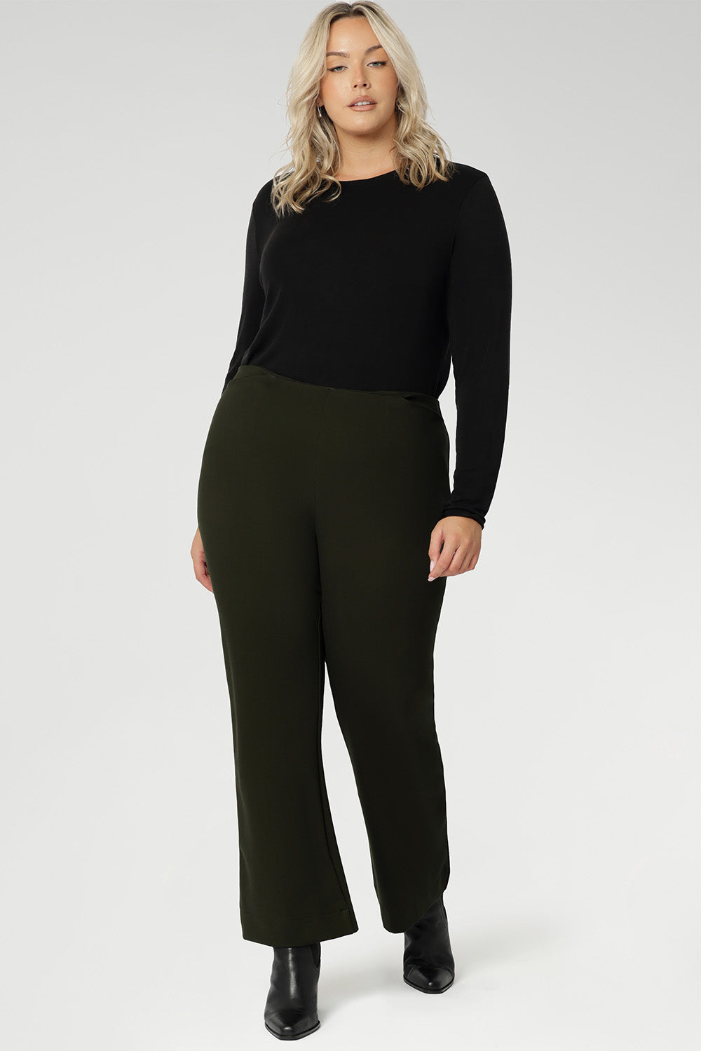 Crafted from a premium dry-touch Ponte jersey fabric, the Lesley Bootcut Pant is a chic, pull-on style pant with bootcut leg, offering all-day comfort and effortless style, whether you're dressing for work or mixing and matching for casual looks.