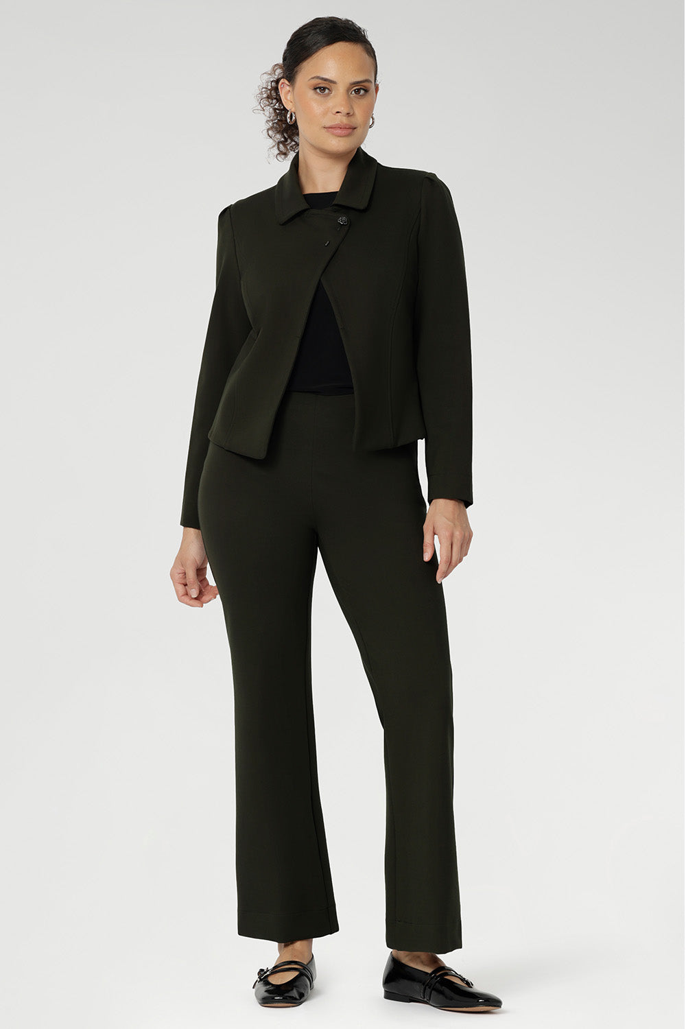 Really lovely cut to these pants, particularly the bootcut at the bottom. The olive colour is just divine with the ponte fabric beautiful and thick for cooler months.