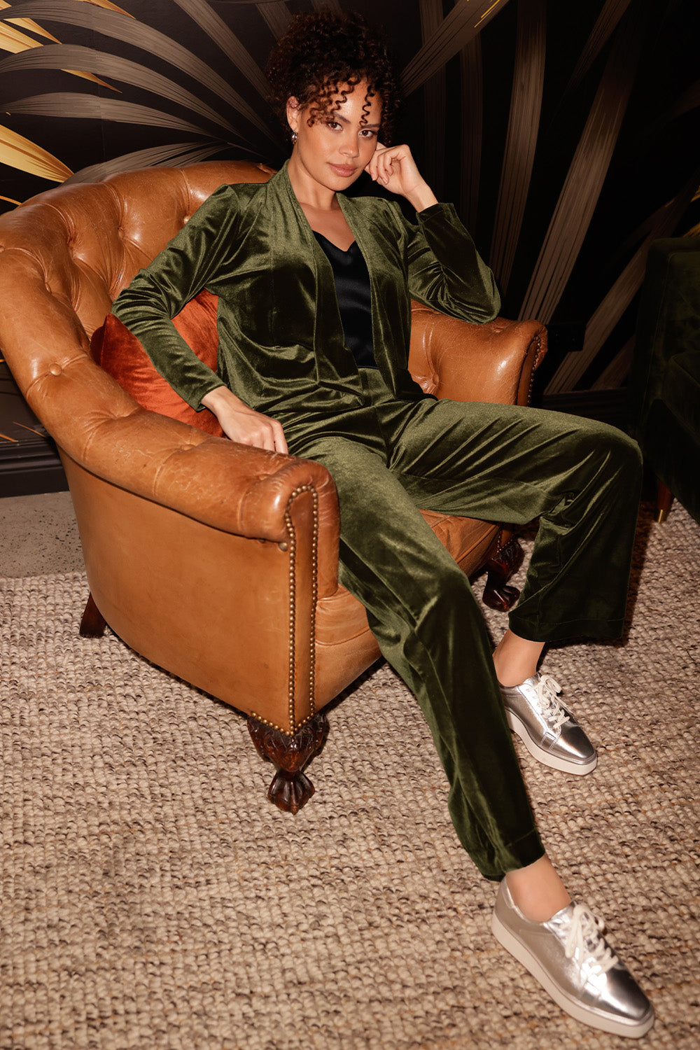 • Crafted from a luxurious velour fabric, with a high sheen finish, velvety hand-feel, and a soft stretch
