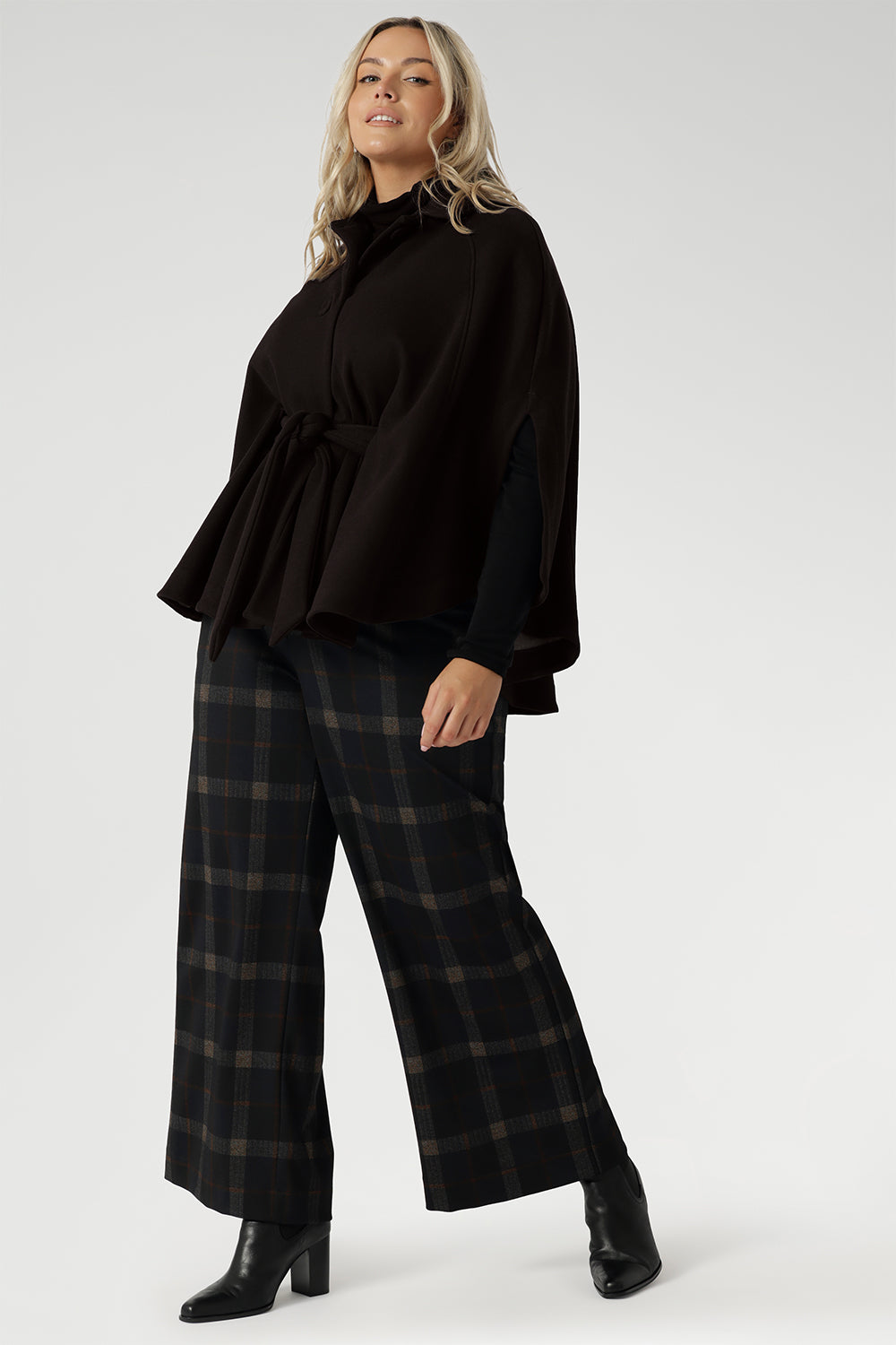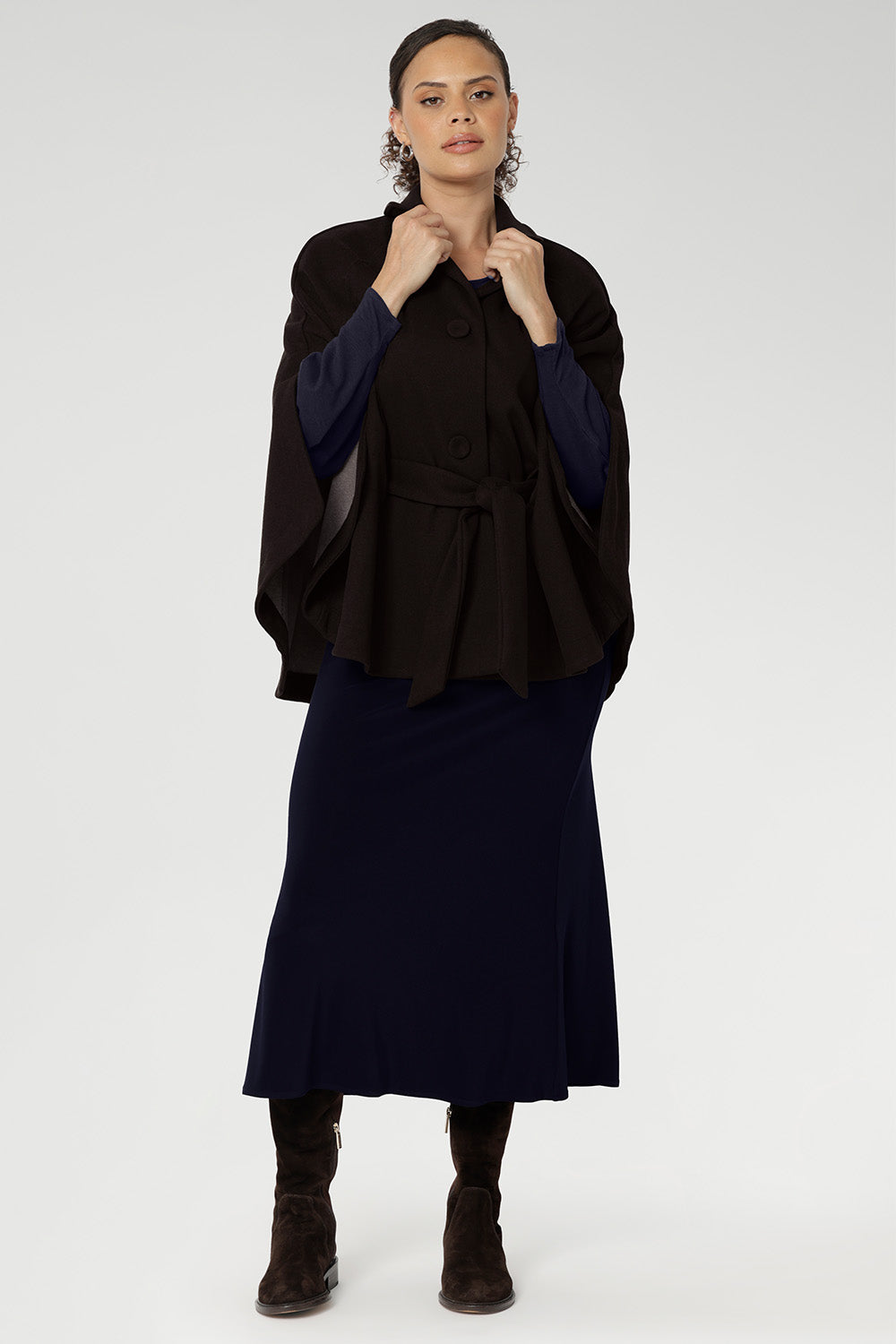 Crafted from a luxe, double-knit Tencel blend, our new winter cape delivers a sophisticated balance of softness, warmth, and comfort. Softly textured with refined weight and stretch, this beautifully crafted cape is perfect for elevating your everyday or making an effortless style statement. Pair with our new Cocoa Plaid pieces for a tonal look that blends softness with structure.