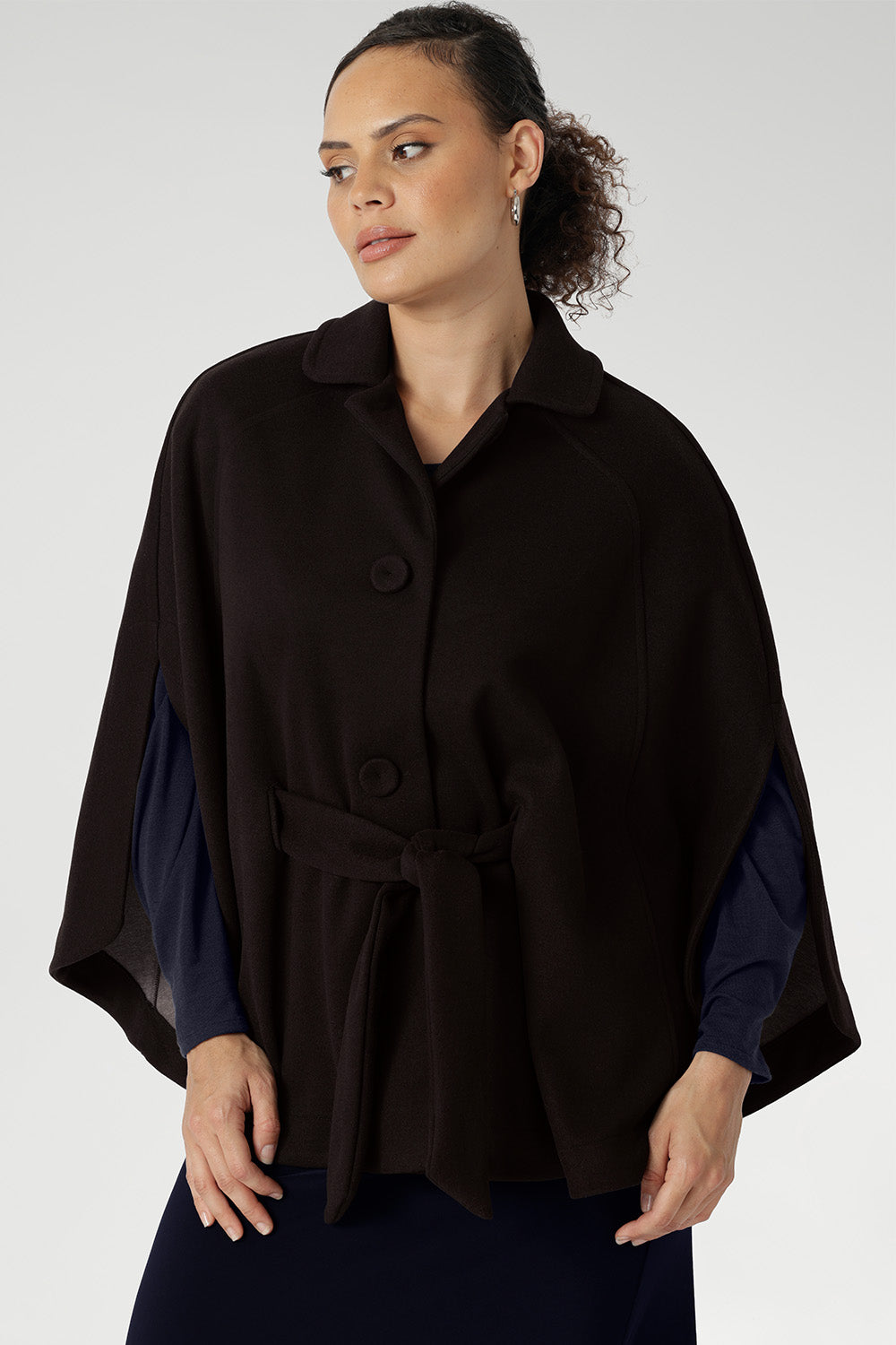 OMG, this cape has been my favourite buy of the season! I stalled originally because of the price , on the back of my previous L and F purchases this year, but luckily I was able to override my budget conscience and treat myself. Thank Goodness! I only wish I had purchased earlier to get the maximum winter wear from this gorgeous piece. Comfortable, oh so stylish, beautifully designed, warm but not too heavy. No more managing other capes and throws, this beauty stays where it needs to be, giving warmth but still enough movement to wear for numerous occasions without being cumbersome. Highly recommend.
