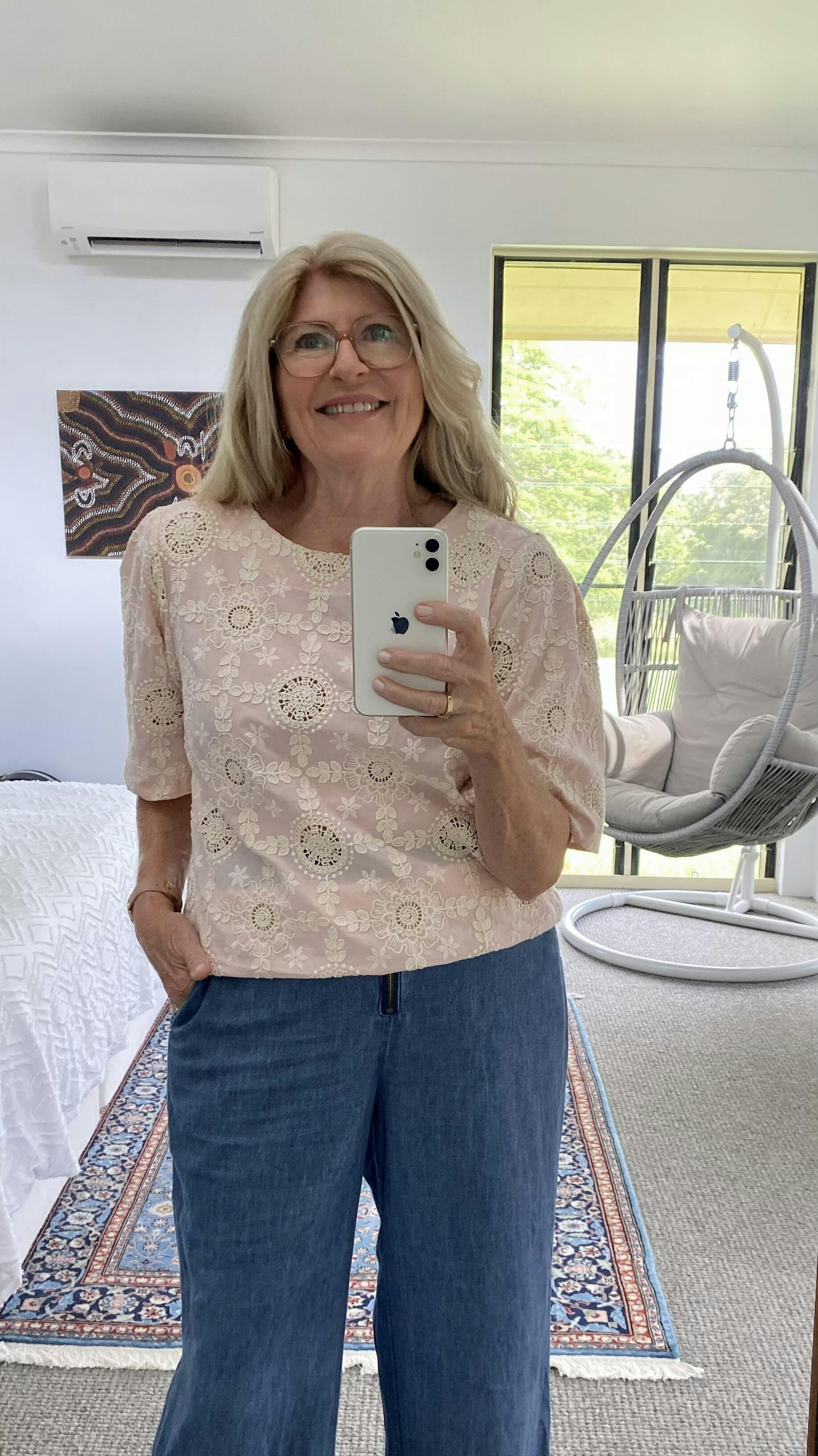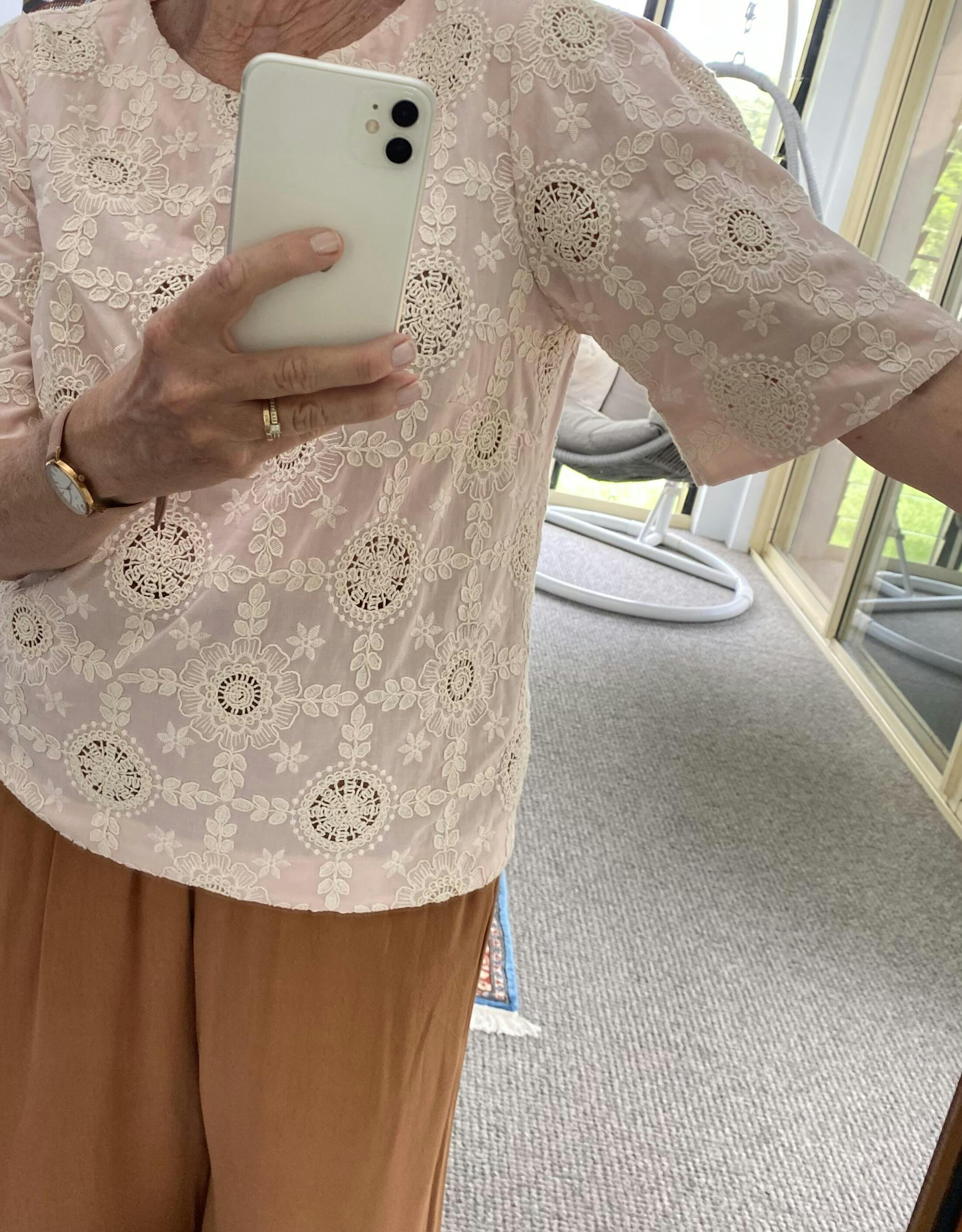 I highly recommend this top of quality embroidery of cream stitching on a soft palette of pink, it’s truly a beautiful design. I usually wear 14 tops however the 12 was a better fit for me. It’s cool, fresh and goes with so many options. Thanks LnF
