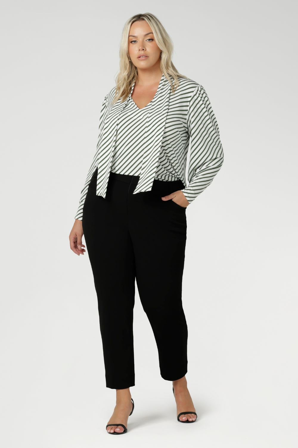 Striking. A perfect match for my Manhattan Skirt in Black. Elevates the entire look. Love the tie aspect in this top. I can tie it up or keep it open. Gorgeous sleeves and no need for a jacket either this top. Definitely a go to when I am going out at night.