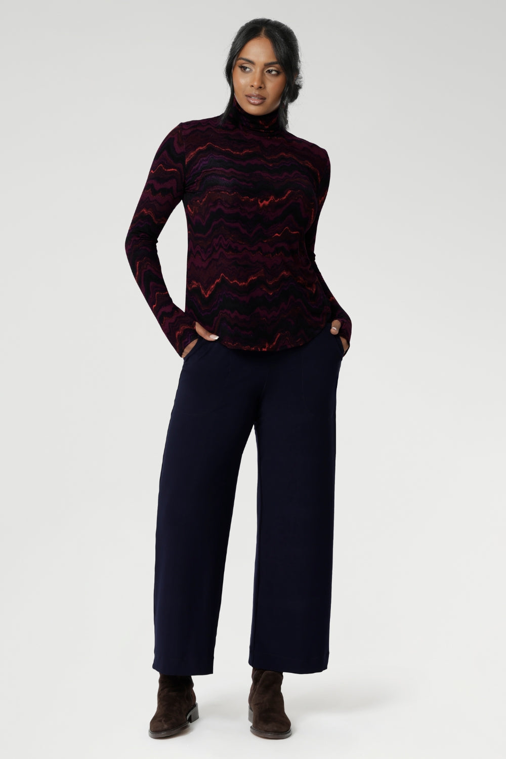 Love turtleneck tops for winter and this beautiful navy Kean is perfect. Lightweight, cosy and warm.