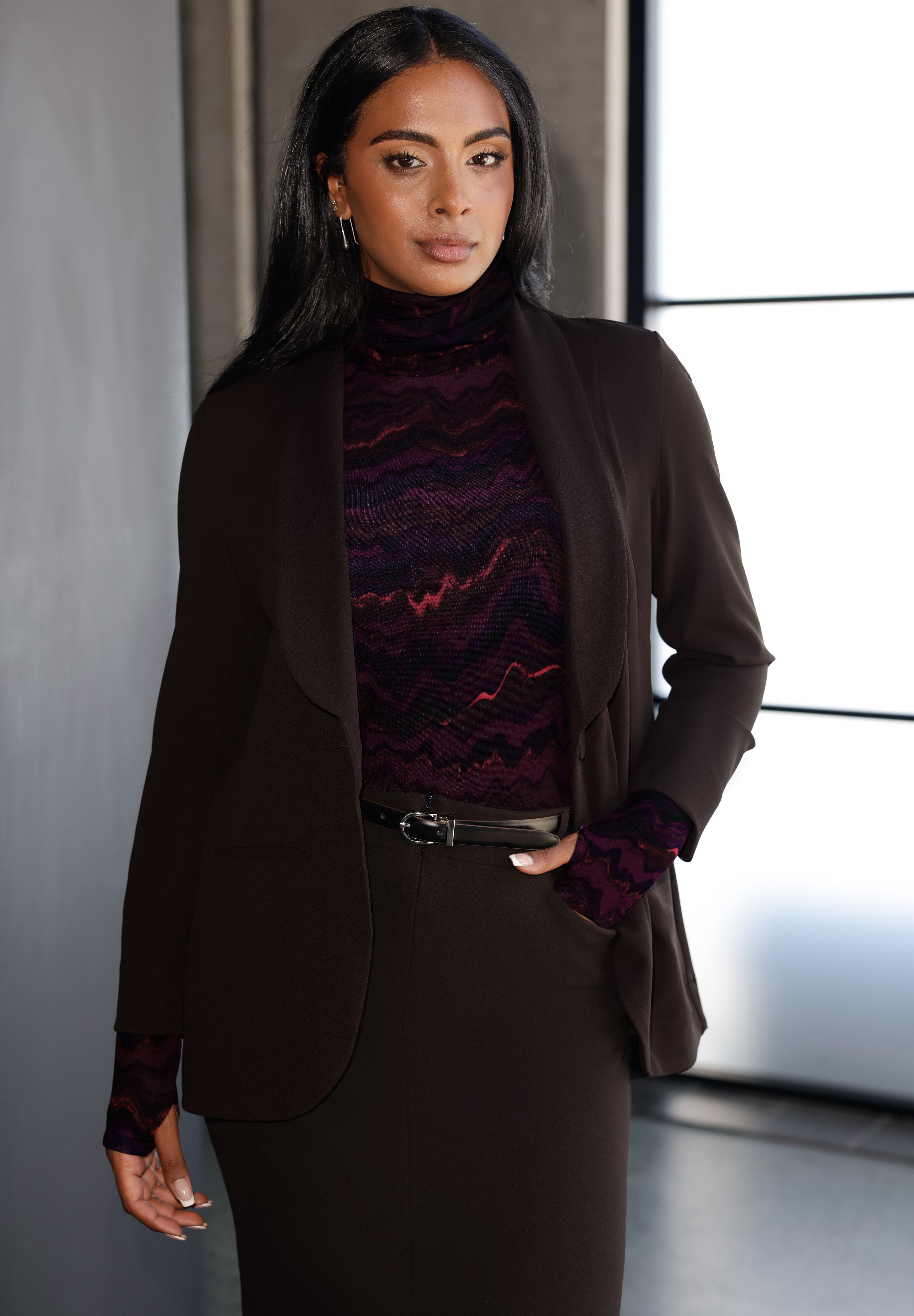Crafted from a luxe textured knit with a soft touch hand feel, the Kean Top in Luxe Lava is your go-to light layer for the cooler months. Featuring extra long sleeves with opt-in/out thumb holes, it’s designed with comfort in mind. Wear on its own for sleek simplicity, or layer under a jacket or coat for polished ease.