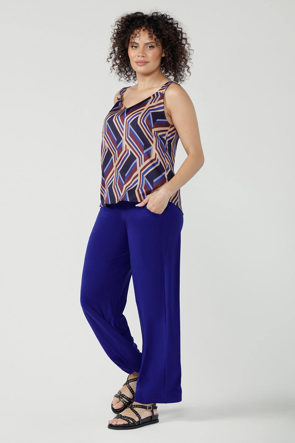Crafted from a luxurious sateen-weave fabric, the Soho Cami in Purple Maze offers a smooth, softly lustrous finish that elevates everyday style. Designed with an effortlessly polished silhouette, this versatile women’s cami transitions seamlessly from the office to evening events—bringing modern elegance to both workwear and occasion dressing.