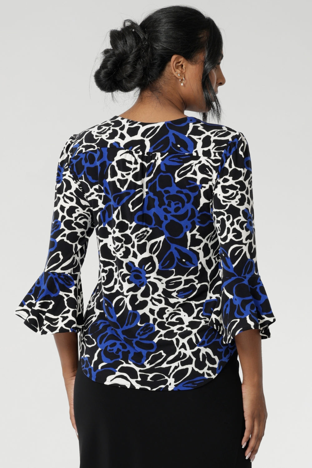 Crafted from our signature dry-touch stretch jersey fabric, Tahlia is a versatile, semi-fitted top perfect for work, events, or casual outings. Designed with a flattering V-neck, fluted sleeves, and bust dart shaping, it can be worn tucked in or out for a polished look. Proudly designed and made in Australia.