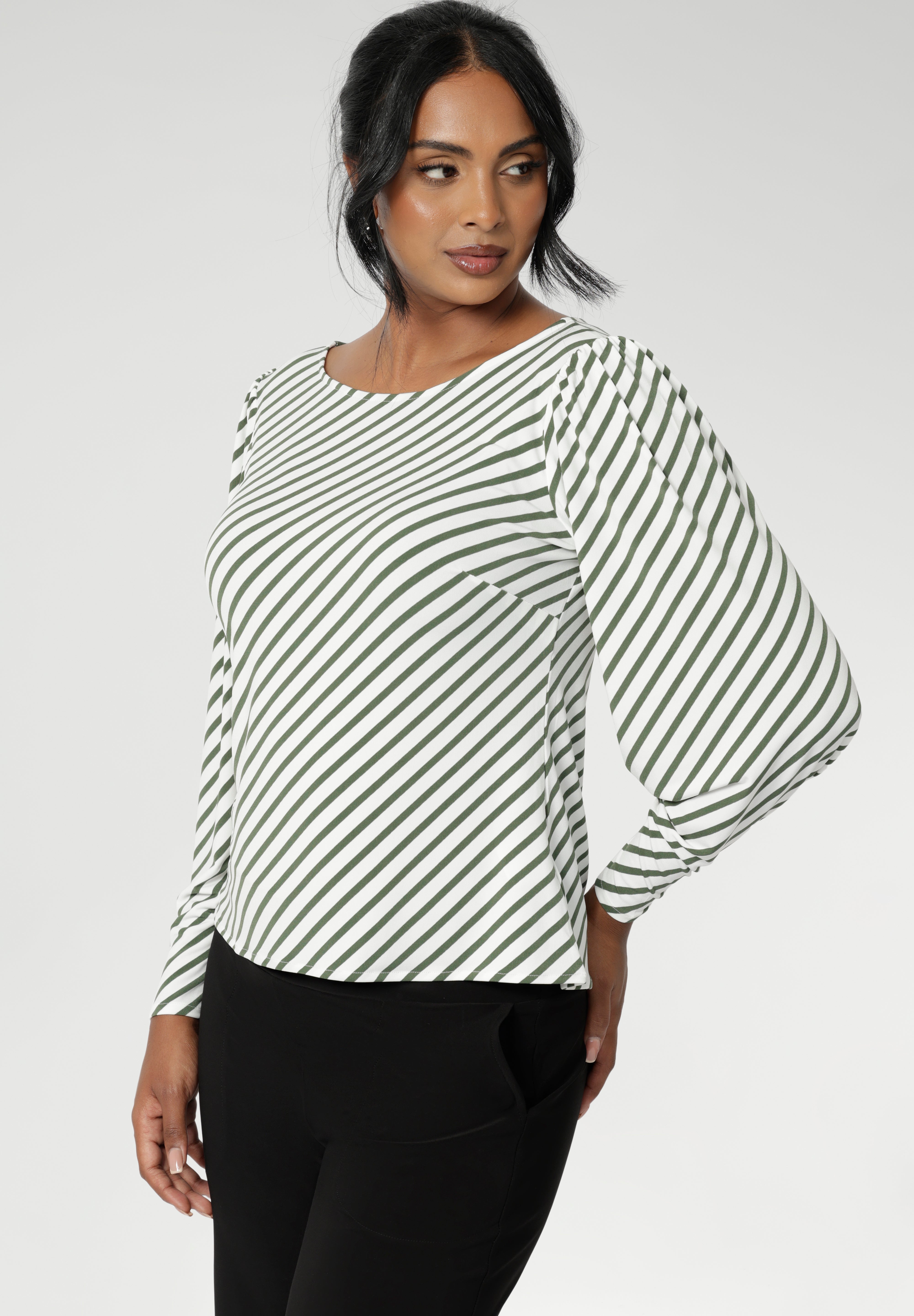 NOTE: The Zara Top in Olive Stripe is sitting wider than the Zara Top in Black Stripe with a slightly shorter length.