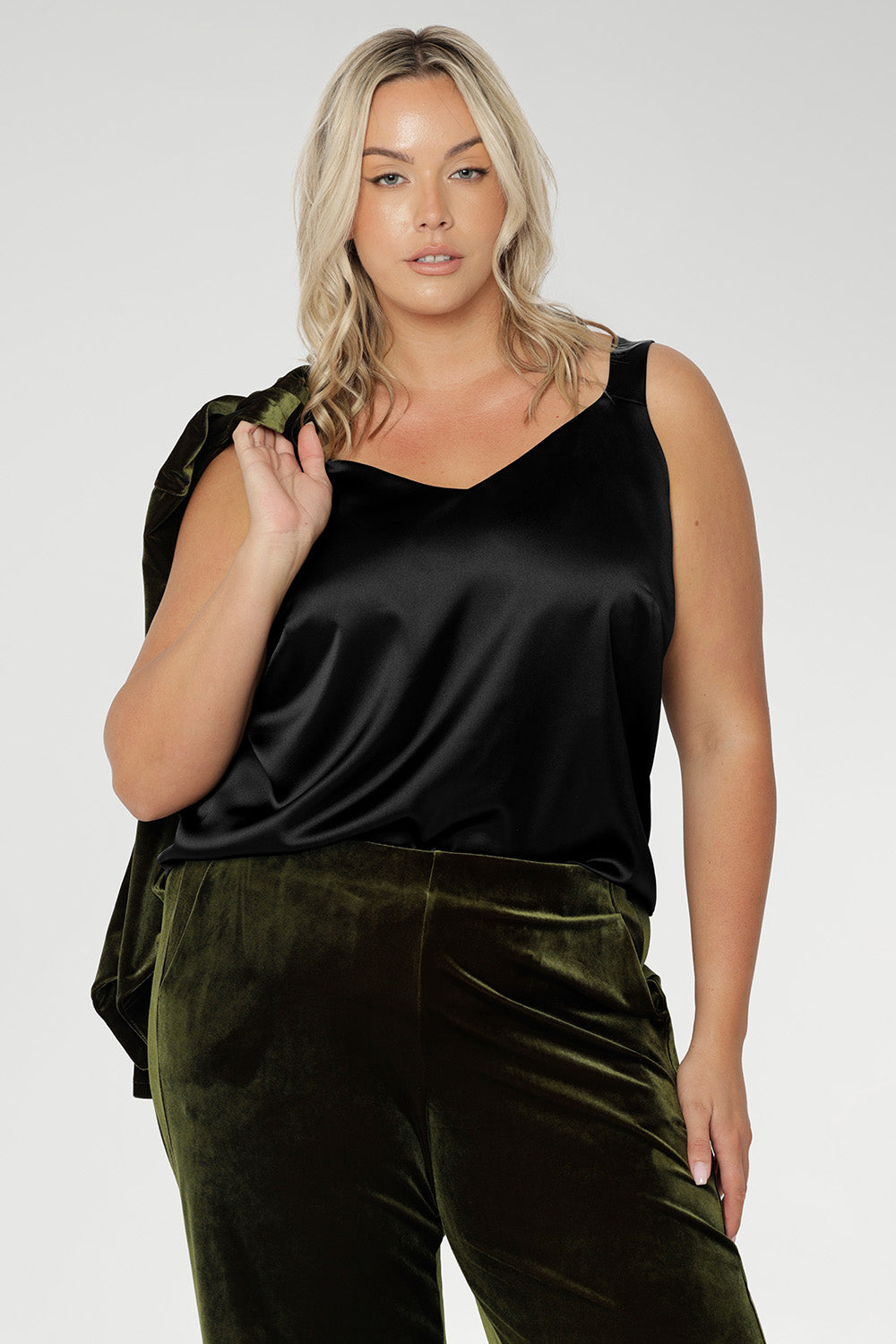 This stylish cami is a wardrobe essential - for all seasons. Looks fabulous under my romy fluid velvety jackets.