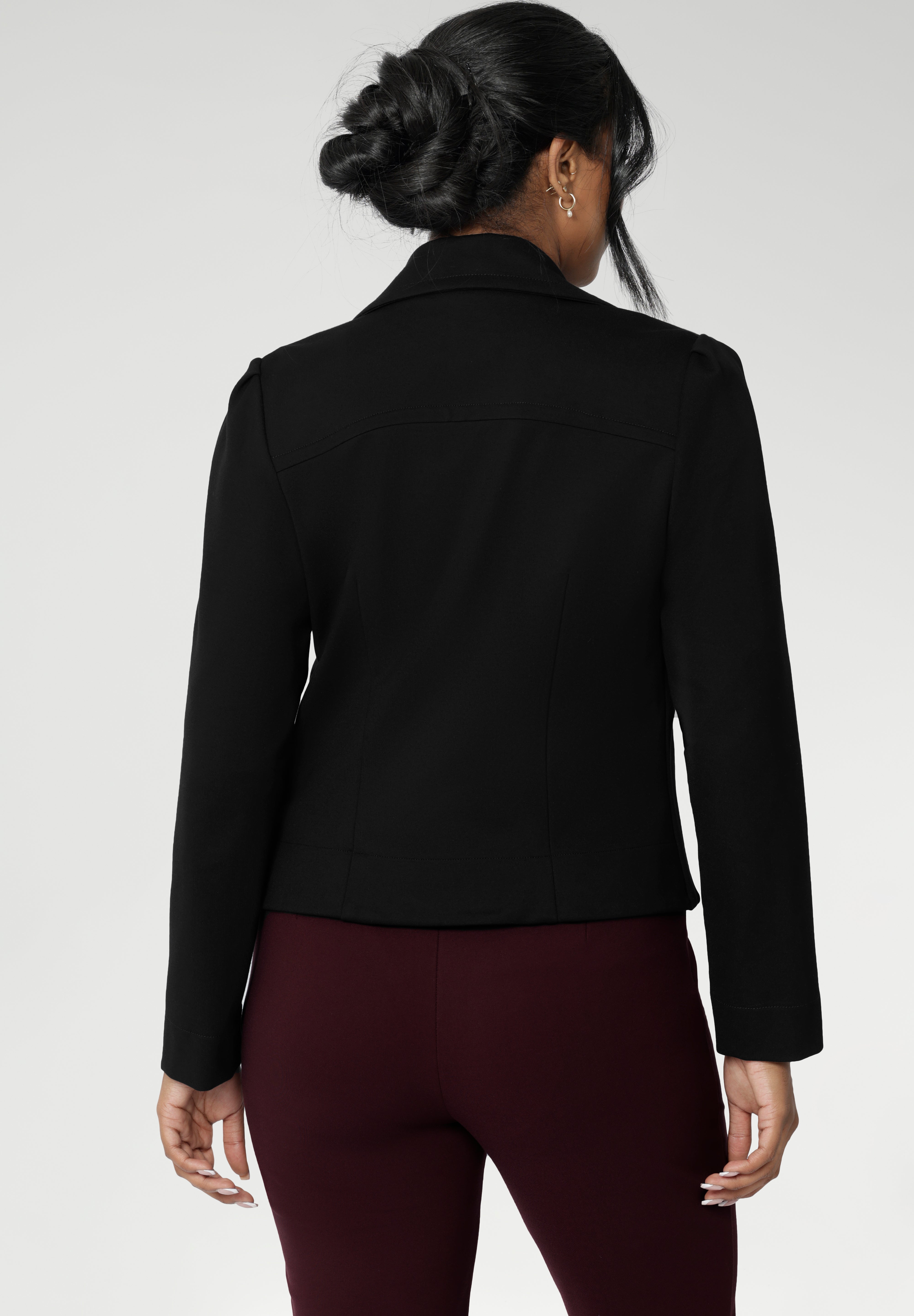 Crafted from a premium dry-touch Ponte jersey fabric, the Garcia Jacket is a modern cropped trench with a tailored, open-front design. An effortless layering piece, it's perfect for work, weekends, and travel. Pairs effortlessly with the Paxton Pant for a coordinated, polished look.